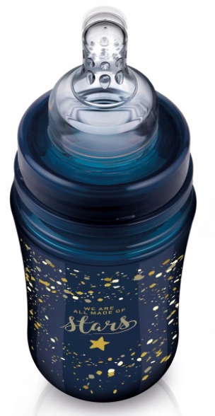 Пляшечка для годування зцідженим грудним молоком. Темний колір пляшечки виділяється на ринку і в той же час дозволяє контролювати кількість молока. Прикрашений золотими частинками, що підкреслює унікальність колекції Stardust. Оснащена професійною, м'якою і динамічною соскою, що робить її безпечною для дитини на грудному вигодовуванні - не порушує смоктальний рефлекс. Динамічна структура пустушки вимагає від дитини активної роботи м'язів губ і язика. Він сумісний з молоковідсмоктувачами LOVI.