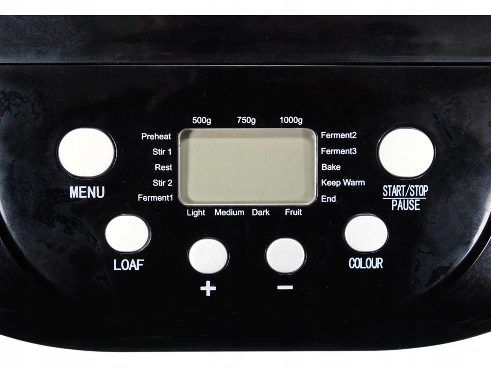 ⭐wypiekacz z 15 automatycznymi programami do wypiekania chleba i przygotowywania ciasta. Окрім програми, користувач також вибирає розмір хліба та ступінь коричневого кольору шкіри. Він також має можливість встановити затримку запуску запуску.