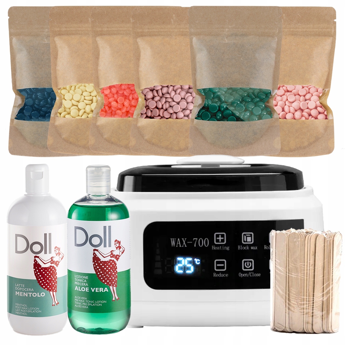 ✅ Лялька Xanitalia Встановіть 6x 1 кг твердої депіляції Віск + нагрівач + Шпатули + Препарати до та після депіляції
