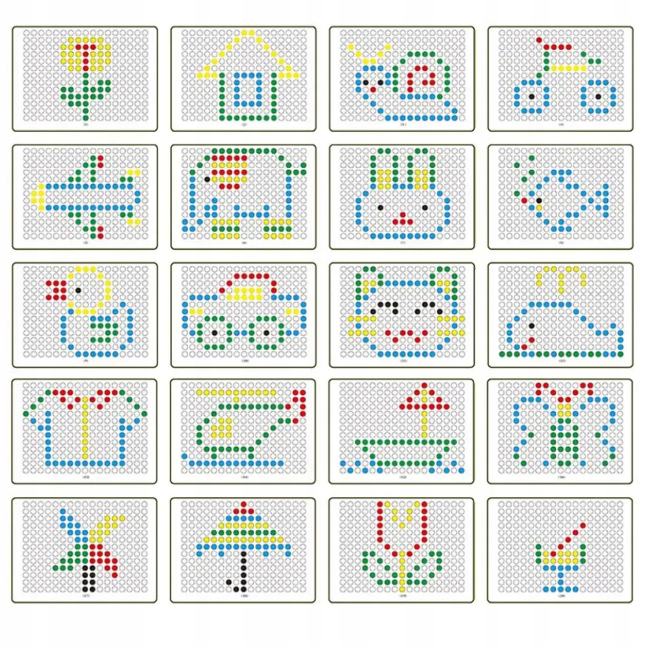 Включено 10 карт з 20 різними конструкціями, які можна поставити в креслену дошку, щоб діти могли скопіювати та практикувати свої маленькі моторні навички. Ви також можете грати творчо і вигадувати власні конструкції :)