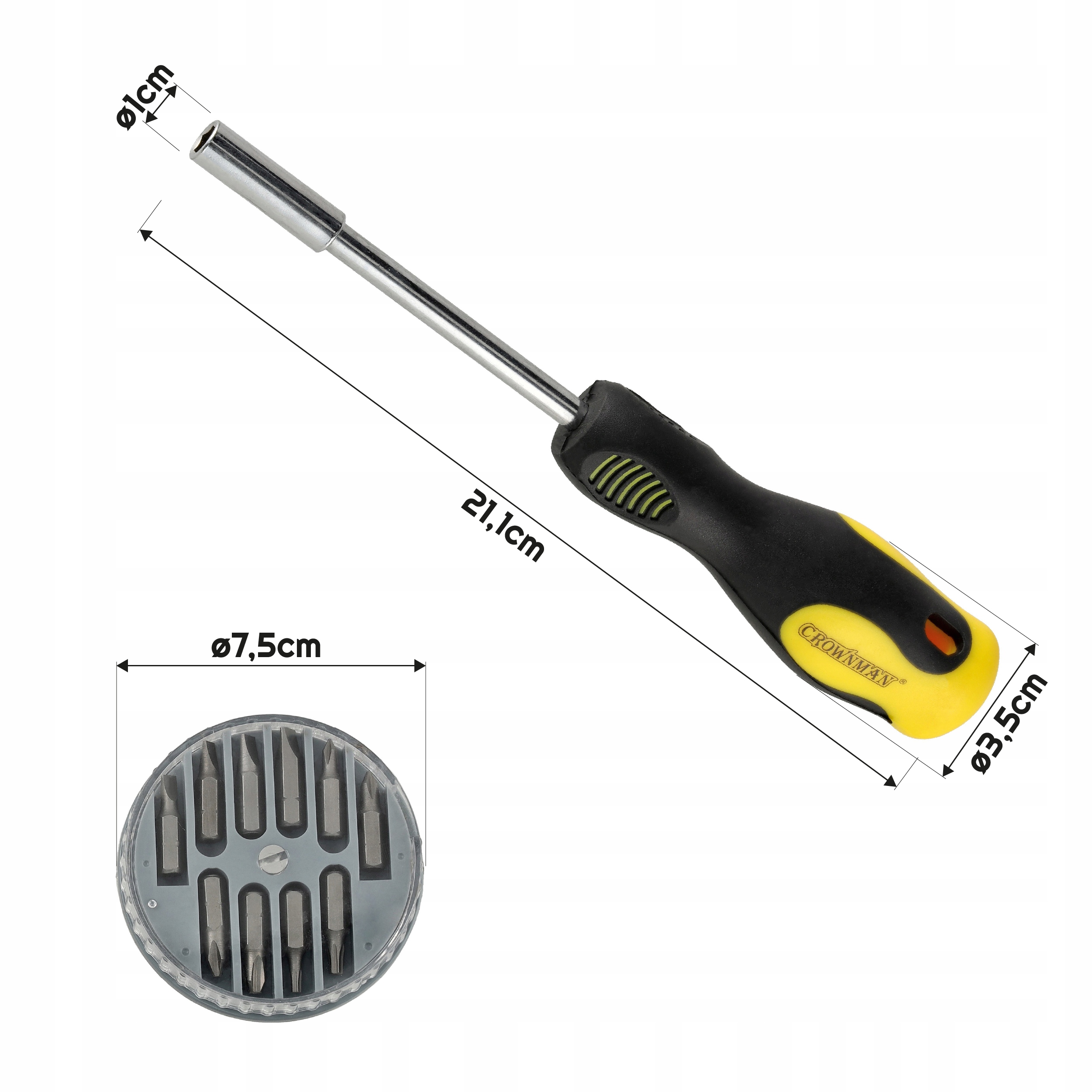 crownman - магнітна викрутка з набором 10 біт (10 дюймів1) - це практичний та універсальний інструмент для домашнього, семінару та професійних програм. Завдяки магнітній ручці та змінним порадам за одну ручку, яку ви отримуєте до 10 різних функцій!