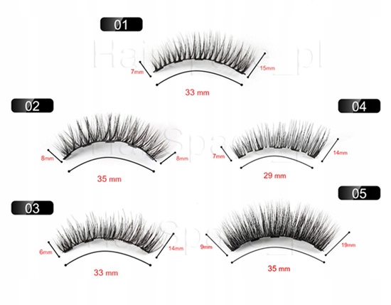 Набір містить 5 пар багаторазового використання. Ви можете вибрати вії різної довжини та товщини, тому кожен знайде модель, яка йому підійде. Пропозиція включає 5 різних моделей вій: