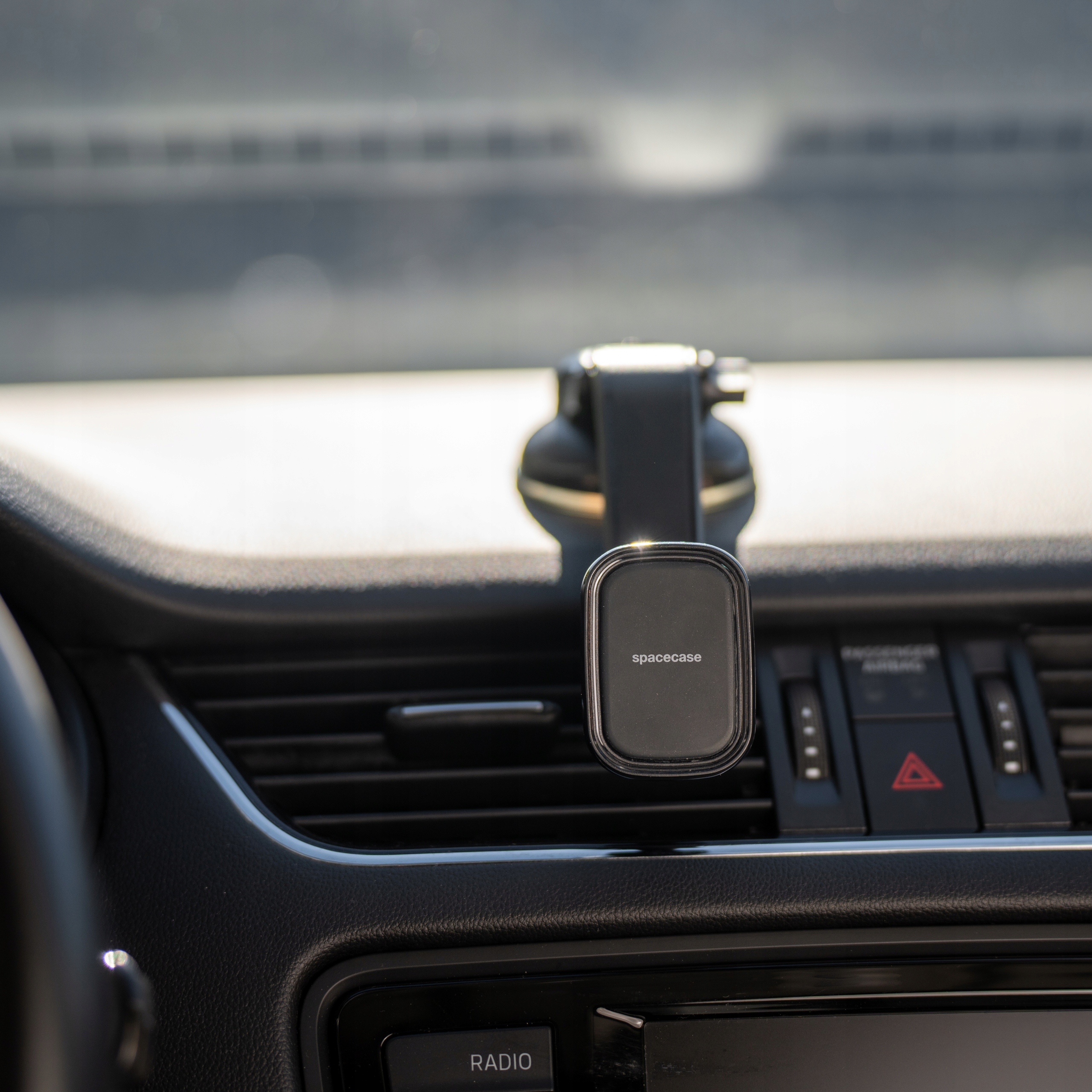 Сучасний і стильниймагнітний тримач Spacecase. Він має потужні магніти, міцну багаторазову присоску та профільовану руку з обертовою головкою. Поставляється з набором пластин, завдяки яким ви можете використовувати тримач на будь-якому телефоні!