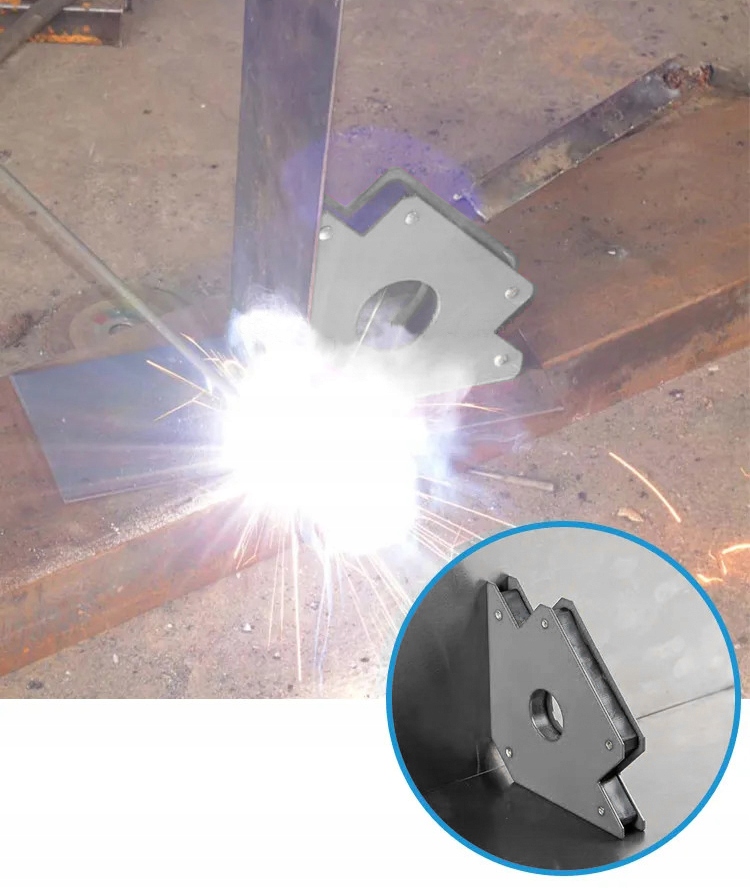 Магнітний кут, виготовлений із сталевого листа та сильних феритових магніти. Це дозволяє точну комбінацію матеріалів під наступними кутами: 45 °, 90 ° та 135 °. Магнітна ємність прибл. 23 кг. Порошок -вірульна поверхня корпусу магніту. Розроблений для тимчасового поєднання металевих елементів при зварюванні, бурінні, лакуваннях, діяльності, що вимагають використання обох рук. Використання магнітного кута дозволяє вільно працювати з руками, і попередньо з'єднуючими, металевими елементами без допомоги додаткової людини.