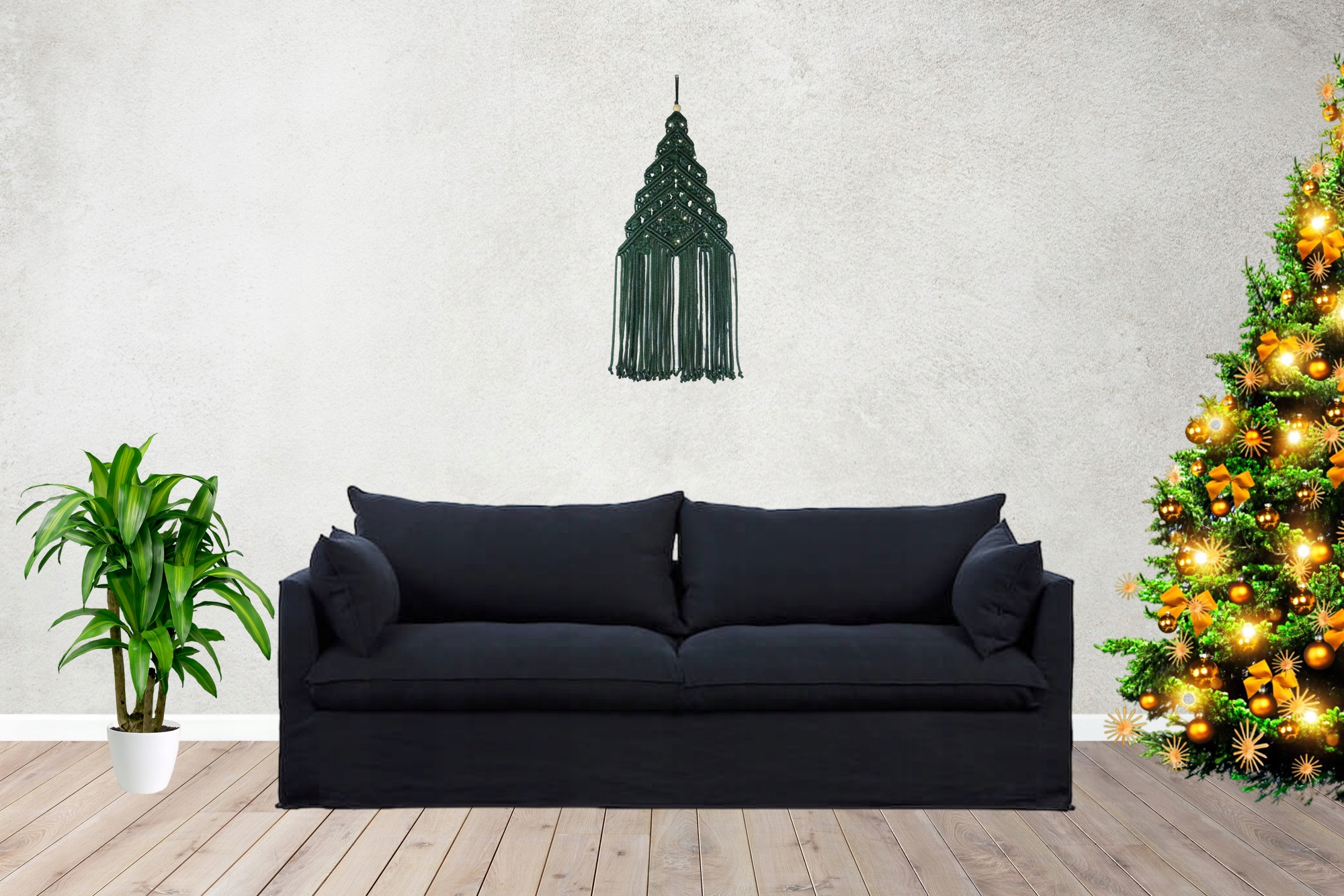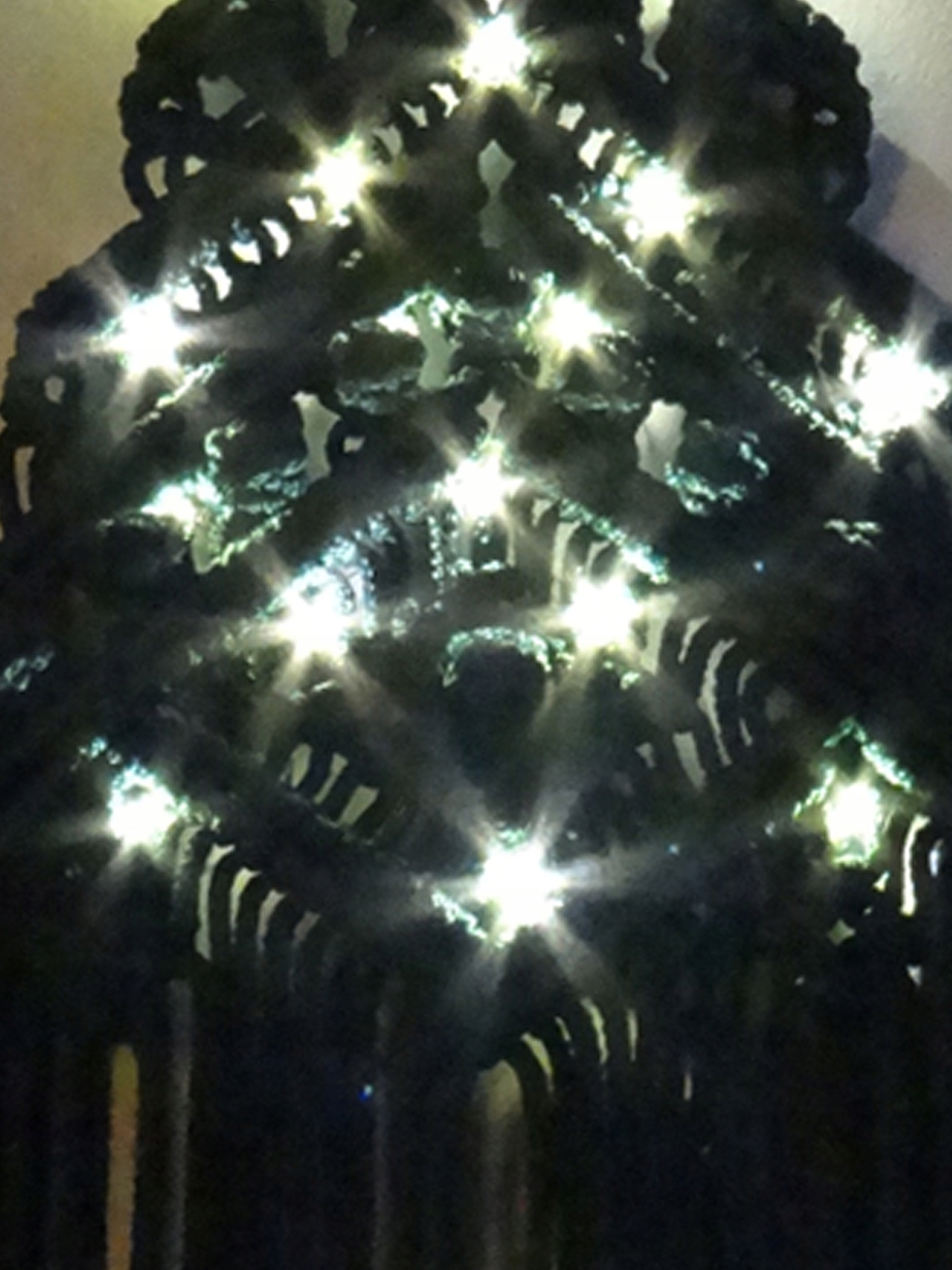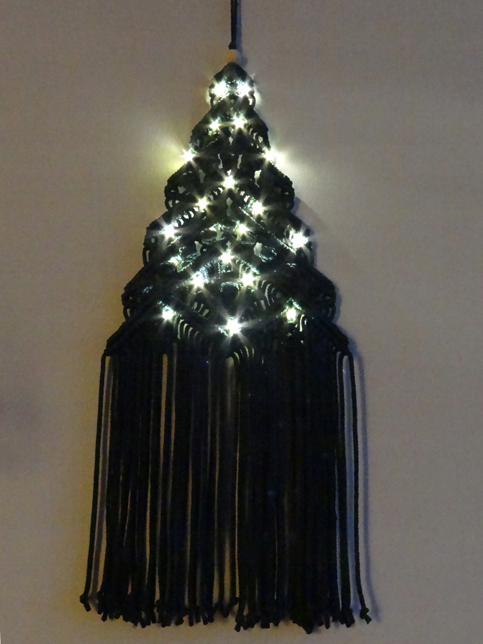Макрама декоративна настінна підвісна ялинка Різдво з освітленням