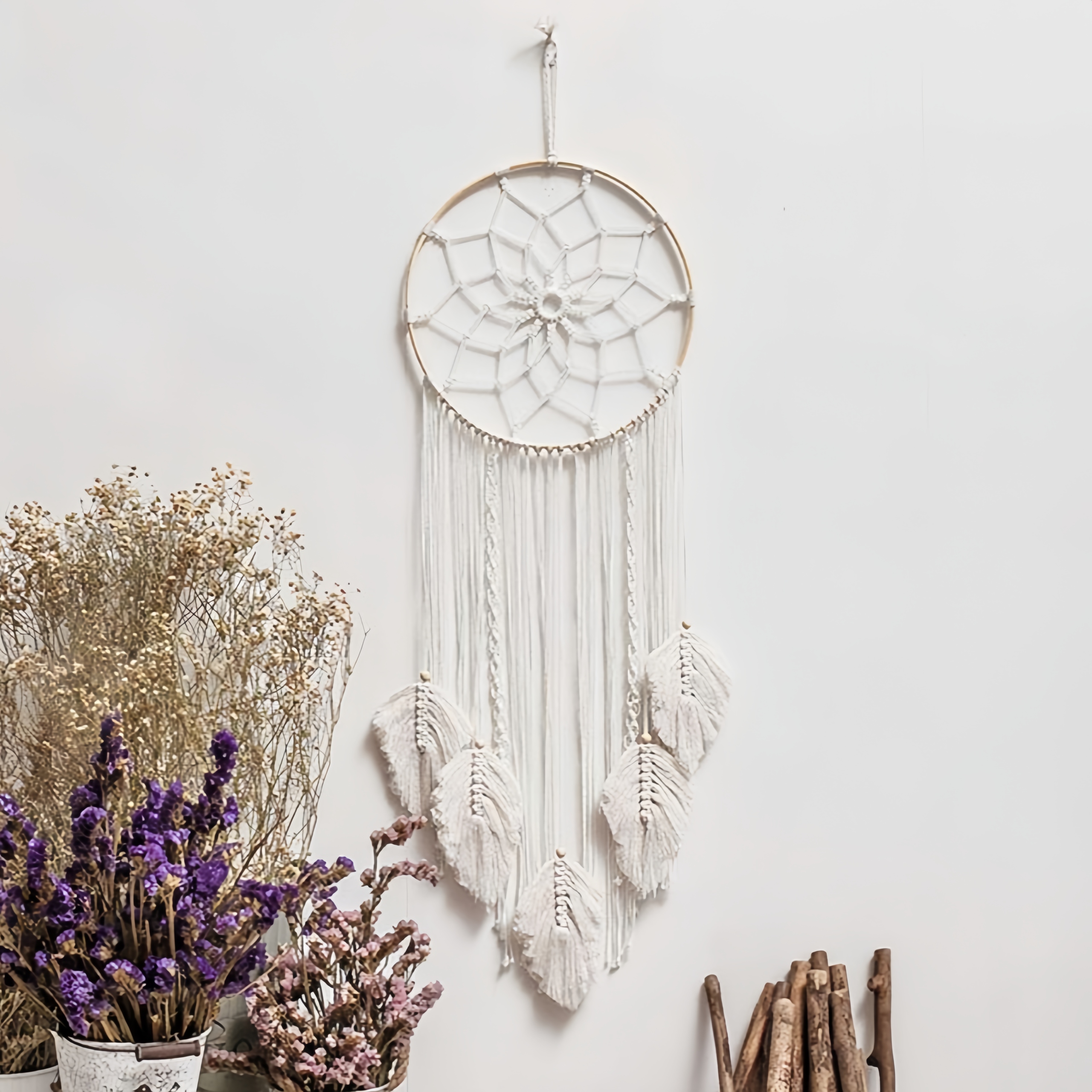 Макрама для стіни Бохо -мріяльна прикраса стіни з струнними декоративними листками