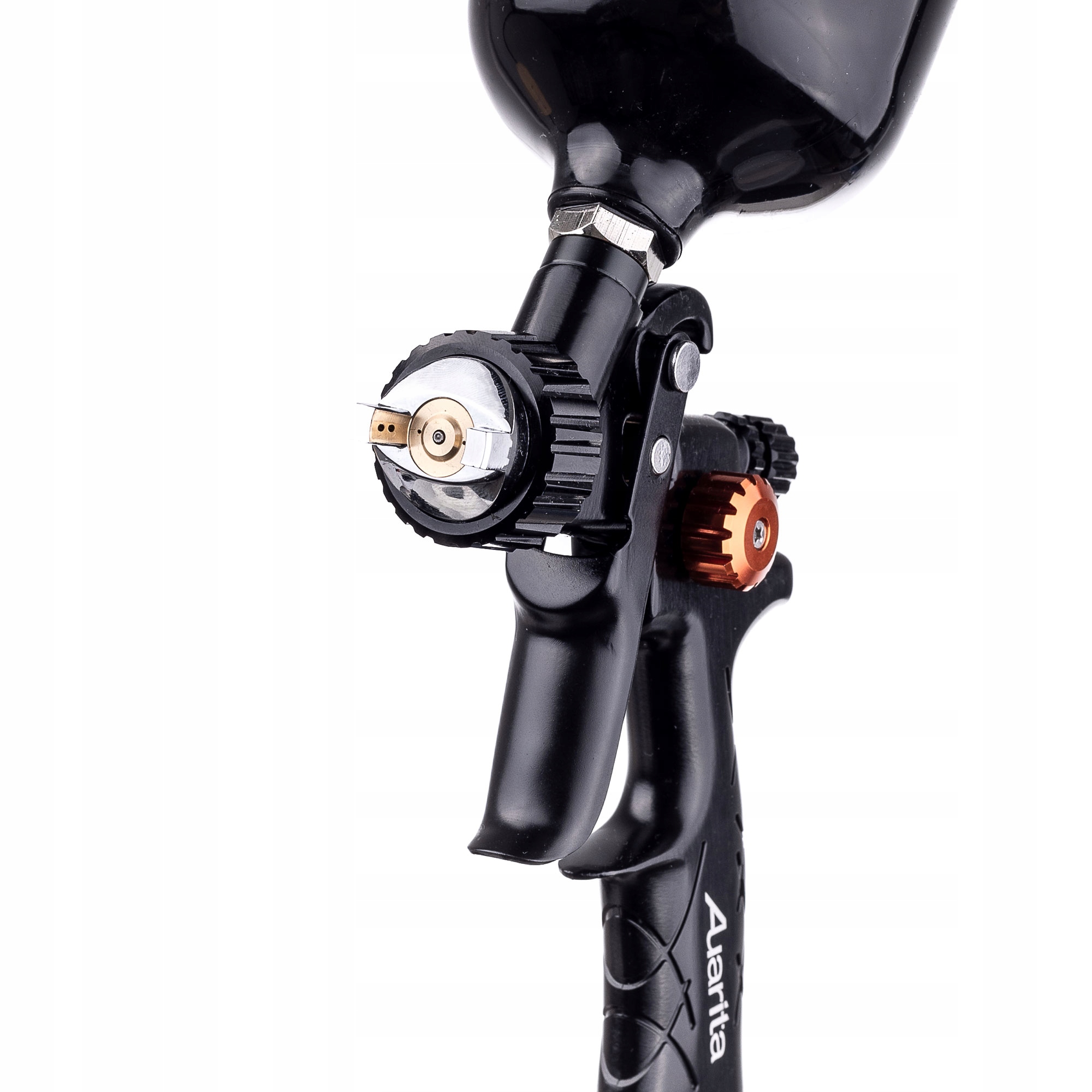Високоякісний міні -пістолет HVLP. Він має бічні вентиляційні отвори, тому потік (мітла) проводяться стабільним, а фарба рівномірно покриває поверхню.