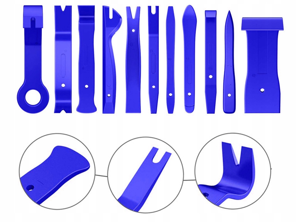 Кожен інструмент був розроблений для забезпечення ергономічної ручки, що сприяє зручному використанню при заміні оббивки, внутрішнього освітлення, автомобіля або панелі приладів.