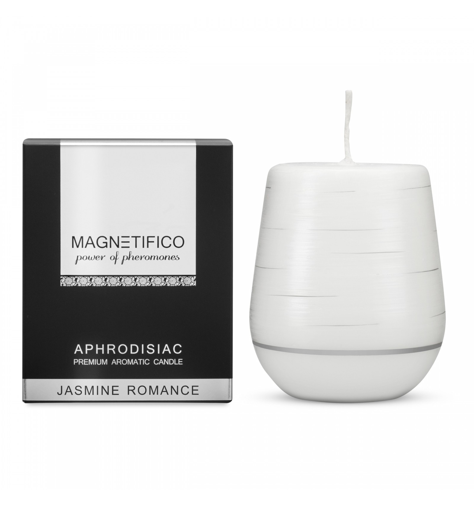 Magnetifico Candle Jasmine Romance - феромонні свічки для ароматерапії з ароматом жасмину. Спеціальні парфуми, що виділяються в результаті згоряння, впливатимуть на почуття та створюватимуть атмосферу, яка сприятиме розслабленню. Більше того, вони допоможуть створити потрібний настрій. Все це сприяє флірту, спокушання і любові. Масажна свічка може стати новим, чудовим елементом вашого спільного вечора, який дозволить вам розірвати рутину і спробувати щось нове. Варто підкреслити, що випущений аромат одночасно ніжний і неймовірно чуттєвий. Magnetifico Candle Jasmine Romance - це свічка, виготовлена особливим чином. У його складі немає сірки і масла, що робить продукт екологічним, безпечним і нетоксичним. Аромат свічки створюють спеціальні віддушки, а не масло. Парфум наноситься на поверхню за допомогою ультразвуку. Свічка буде горіти до 36 годин. Виріб також привертає увагу своїм унікальним дизайном. Він був зроблений вручну. Завдяки елегантному дизайну він підійде як подарунок і буде гарно виглядати в будь-якому інтер'єрі.