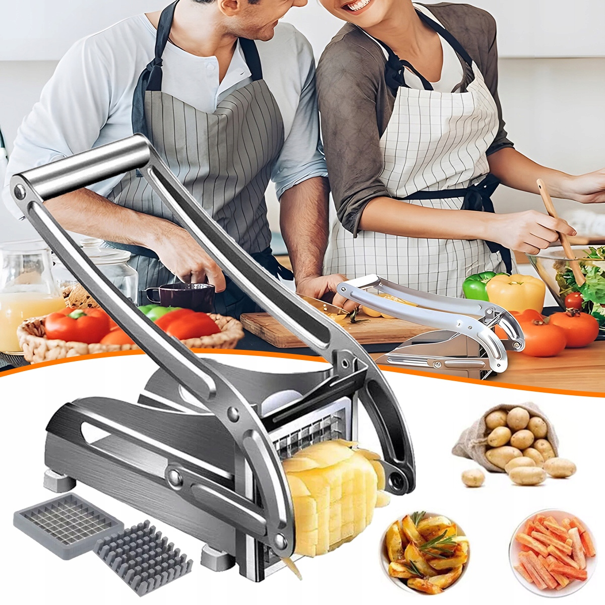 Покладіть в картоплю і важко натисніть, а лопатки можуть легко розрізати його на шматки. фрі.