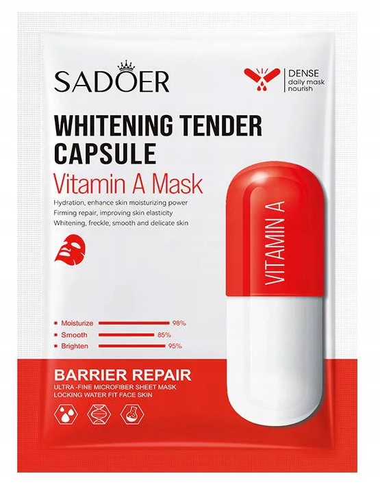 Чому варто вибрати маску Садоера з вітаміном А? Прискорює оновлення клітин, зменшує знебарвлення та відновлює шкіру юнацької пишності. комфорт.