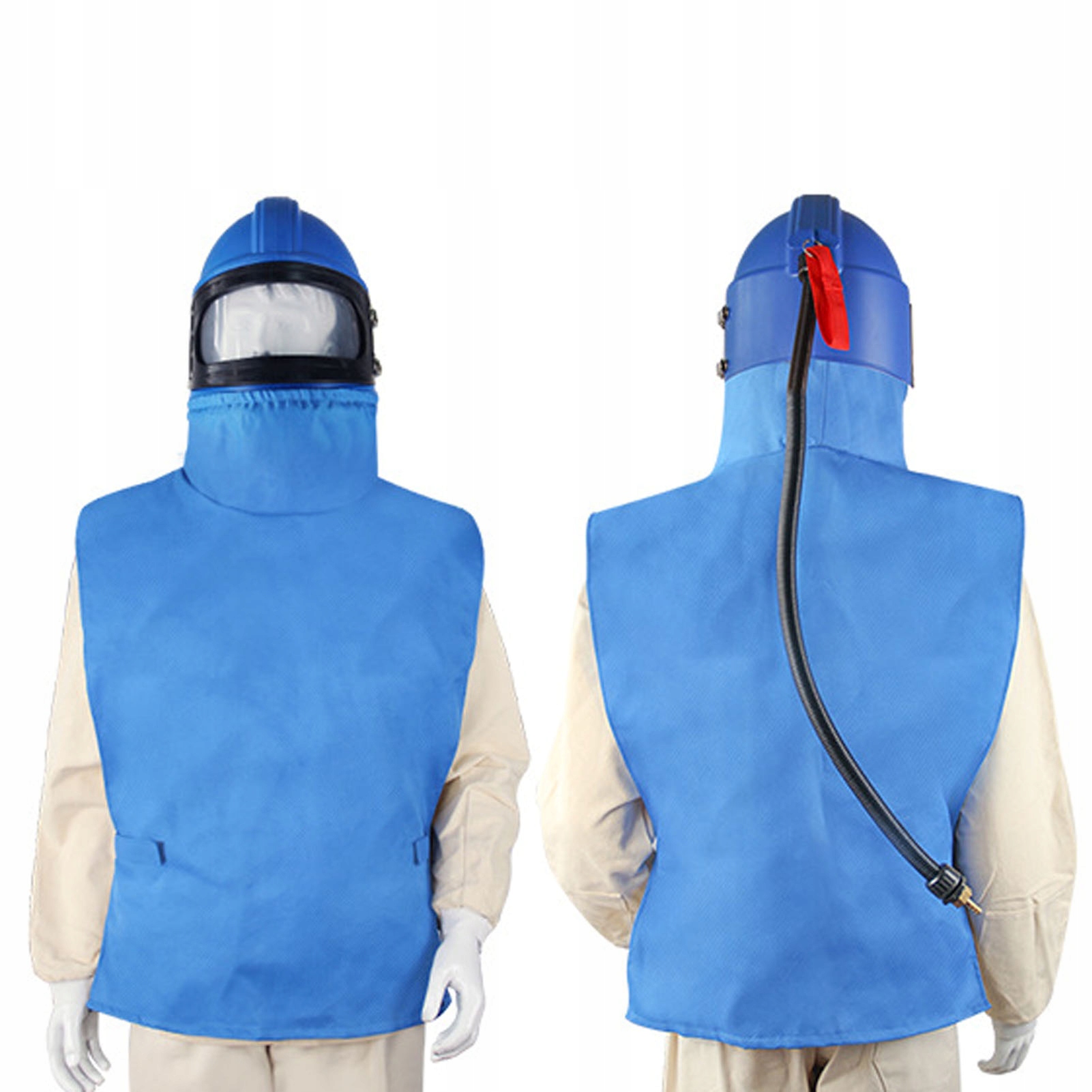 3. З комбінезором піскоструминної панелі: Цей шолом з пісковиком оснащений легким костюмом з піскоструминкою без рукавів, що запобігає одягу оператора, при цьому забезпечення охолоджувача робочого середовища