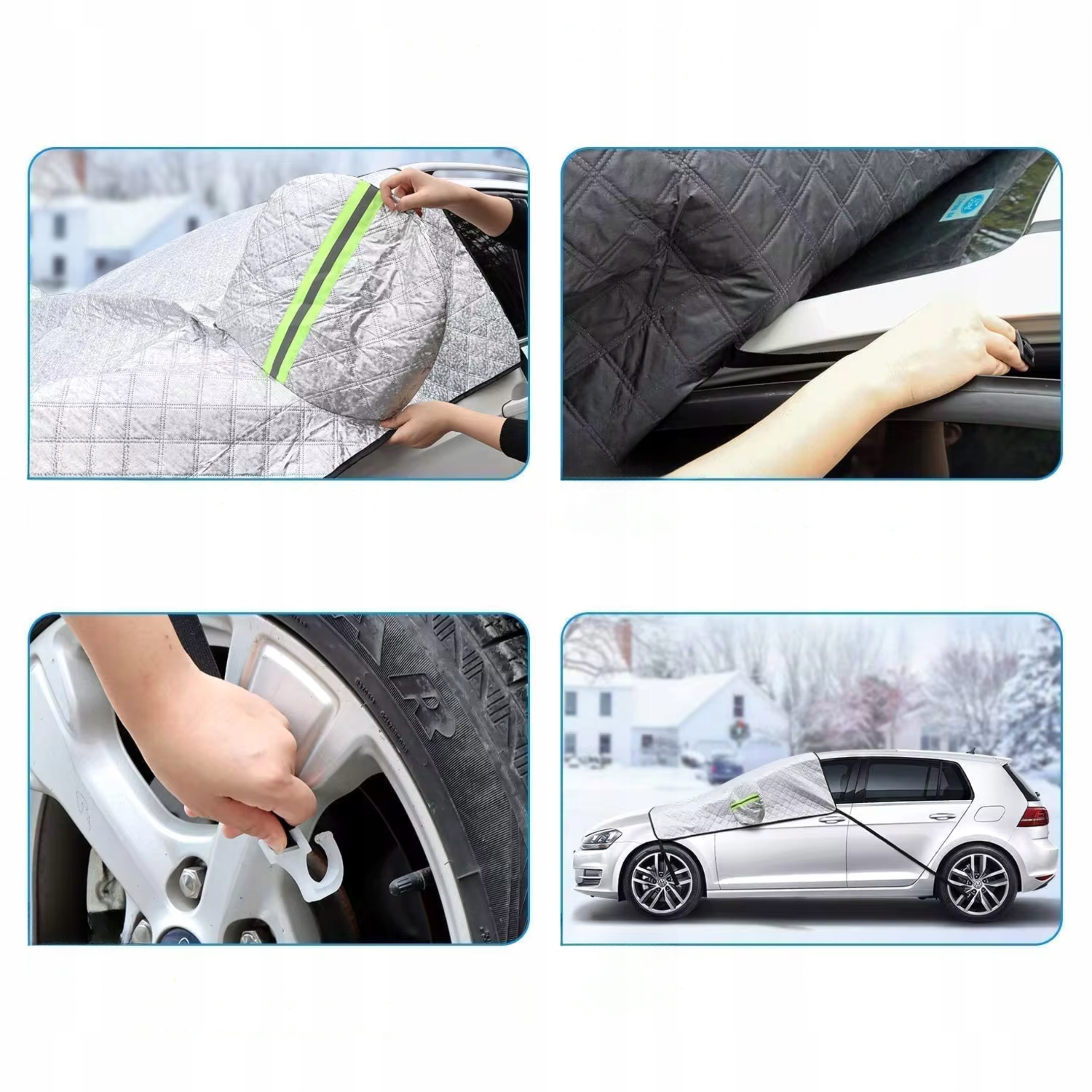 Автомобільний чохол розроблено для повного захисту лобового скла, бічних вікон і бічних дзеркал автомобіля. Це інноваційне рішення захищає автомобіль від різних погодних умов - від снігу та льоду до морозу, а також від інтенсивного сонячного випромінювання. Завдяки цьому як взимку, так і влітку вікна вашого автомобіля готові до руху без необхідності додаткового шкрябання чи охолодження салону. Захист бічних вікон покращує видимість, а підготовка автомобіля до руху після зимової ночі стає швидшою та легшою.