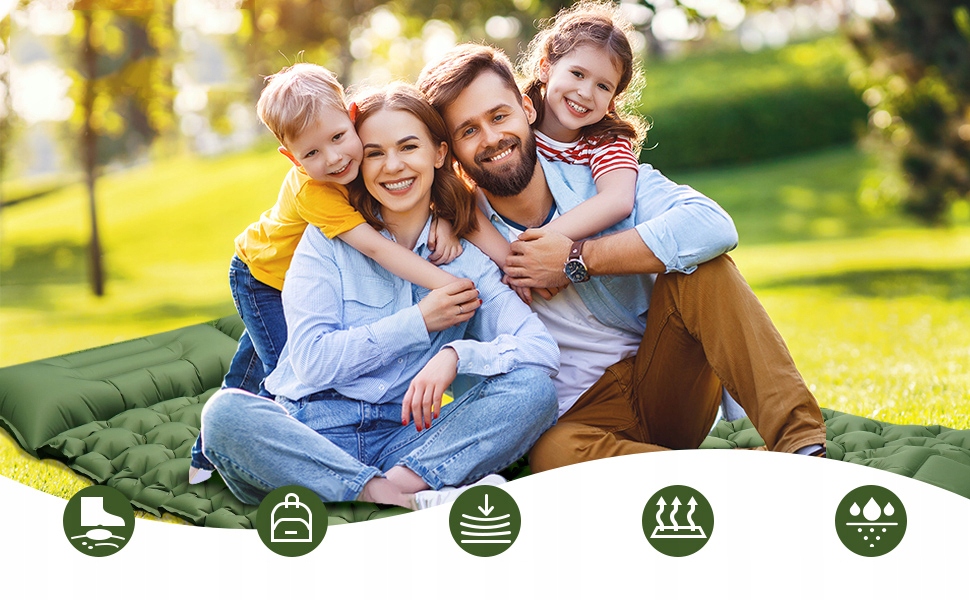 - Кемпінговий спальний килимок виготовлено з нейлону щільністю 40 день і ТПУ. Цей килимок можна використовувати безпосередньо на землі, не Не хвилюйтеся про камені, нерівну землю чи вологу.