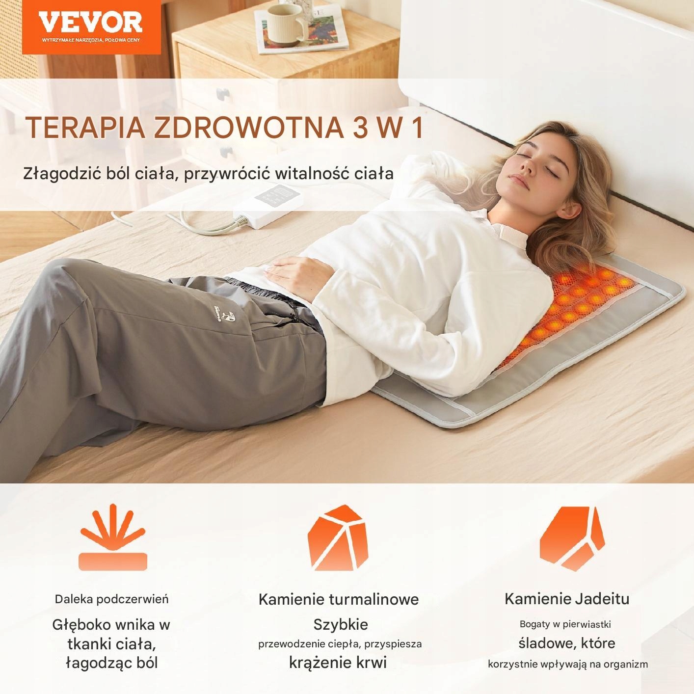 Інфрачервона нагрівальна подушка є ідеальним рішенням для регенерації та розслаблення тіла. Він використовує віддалену інфрачервону технологію та природні камені - 132 нефриту та 54 турмалін - які глибоко проникають через шари шкіри, досягаючи м’язів і забезпечуючи їх розслаблення. Це покращує кровообіг, підтримує регенерацію та якість сну та відновлює життєву силу, допомагаючи зменшити стрес та щоденну напругу.