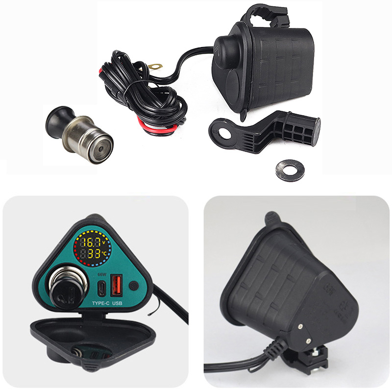 MC37 Charger Motorcycle Scooter Voltmeter Socket Ligher USB-C QC 3.0