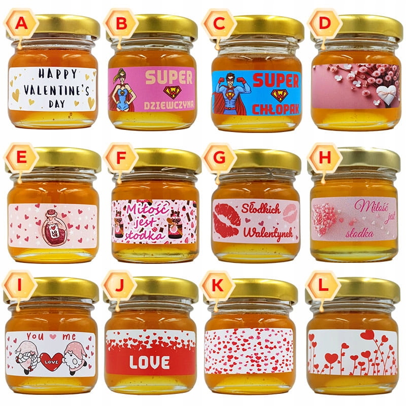 На інших пропозиціях ви можете придбати інші візерунки наклейок для меду для Дня Валентина