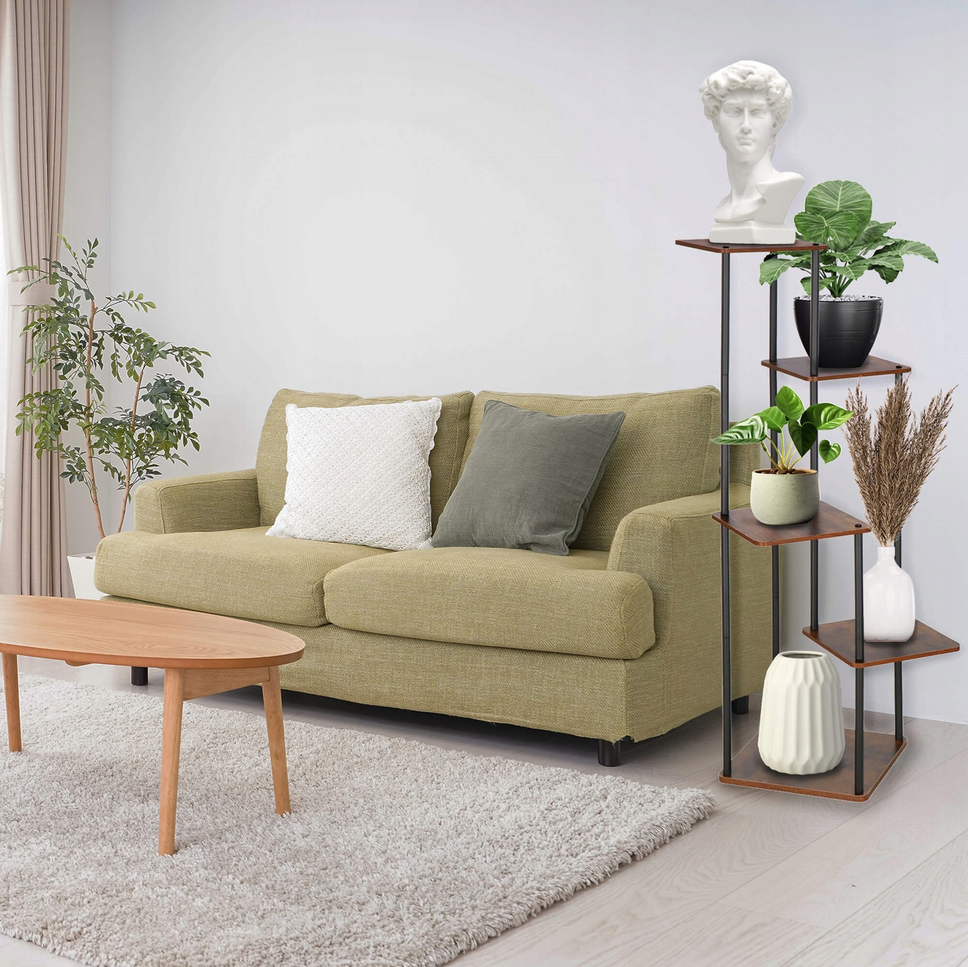 Квіткова підставка вміщує до шести горщиків і буде працювати однаково добре для квітів з великими, висячими листям, а також для менших, наприклад. сукуленти. Також було б хорошою ідеєю використовувати ці меблі як місце для горщиків з травами . Ви створите з ним унікальну композицію , яка дасть інтер'єру клімат, і в той же час заощаджуючи місце і полегшить догляд за своїми рослинами в одному місці. Ставтеся до себе заміною саду вдома.