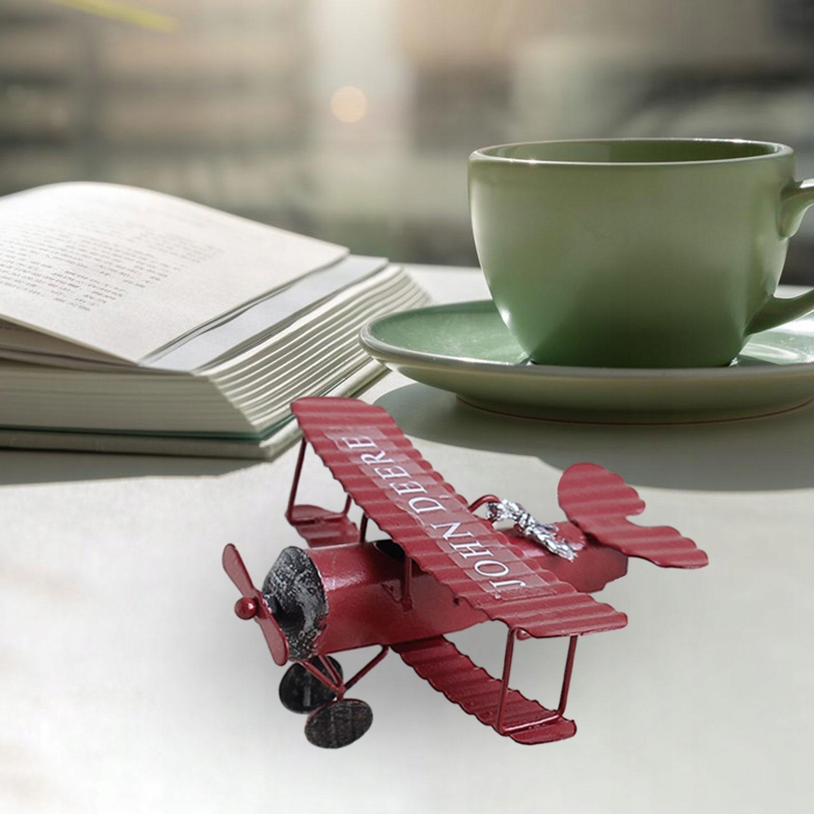 Біплан Металевий літак Модель Декорація Літак Реквізити для фотографій Настільна підвіска Іграшка Планер