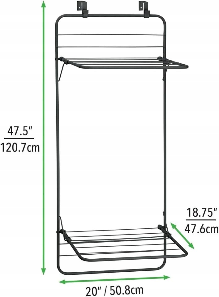 Практична і складна сушарка ідеально підходить для невеликих квартир, ванні кімнати або балконів. Ви повісите його на двері - без буріння, не беручи на підлогу. Два рівні дозволяють зручно висихати нижню білизну, сорочки, рушники або спортивний одяг.