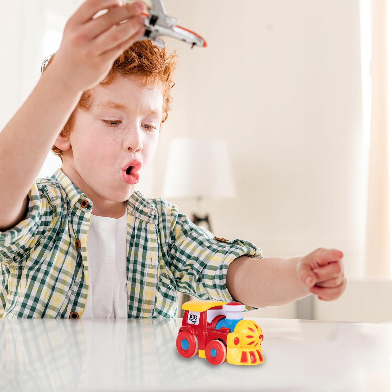 Рухомий димохід у цьому чарівному паровозику – елемент, який неодмінно приверне увагу кожного малюка. Просто розтягніть транспортний засіб, дайте йому побігти, і димохід почне рухатися.