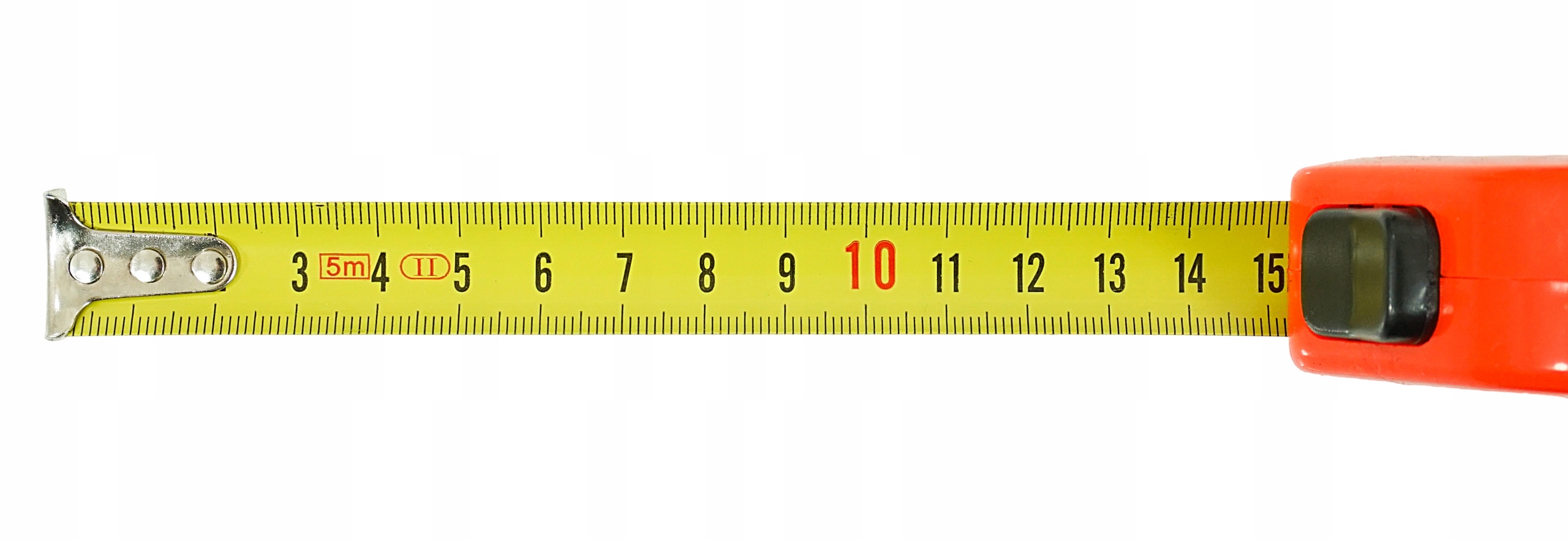 5 м. Стрічка, виготовлена з пружного сталевого листа шириною 18 мм. Жовта стрічка з шкалою, застосованою, використовуючи дуже точну техніку струменевого друку. Поверхня захищена нейлоновим покриттям, яке захищає стрічку від стирання та знебарвлення під впливом сонячного світла. Закінчився суцільним гачком. Касета, оснащена коротким повідцем і відсікаючим власником. Ідеально підходить для швидких точних вимірювань.