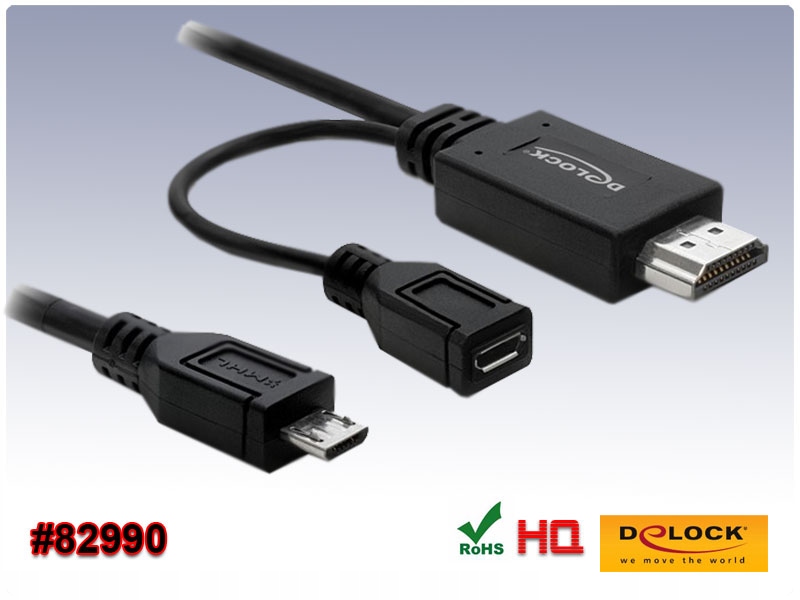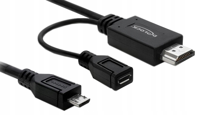 кабель Delock з інтерфейсом MHL та USB та HDMI -з'єднанням рекомендується для з'єднання останніх розумних боїв, планшетів та ПК. Ви можете підключити свій смартфон до телевізора HD та дивитись фотографії та відео в якості HD. Це; Крім того, він забезпечує стандартний кабель Micro-B розетки USB через короткий кабель. Підключіть живлення смартфона або комп'ютер-Tablet-PC до порту Micro-B USB для відтворення відео та живлення на мобільний пристрій.