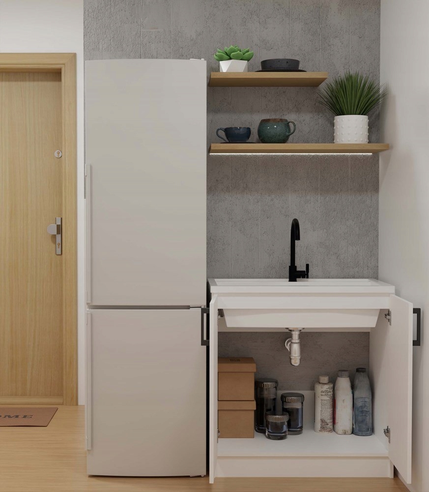 Ця шафа - справжня насолода для любителів функціональних рішень! Його можна використовувати як тумбу для стільниці (пам'ятайте, що стільниця не входить у комплект) або як міцну основу для раковини. Універсальність робить його ідеальним для невеликих кухонь, міні-кухонь і квартир-студій, максимально користуючись наявним простором.
