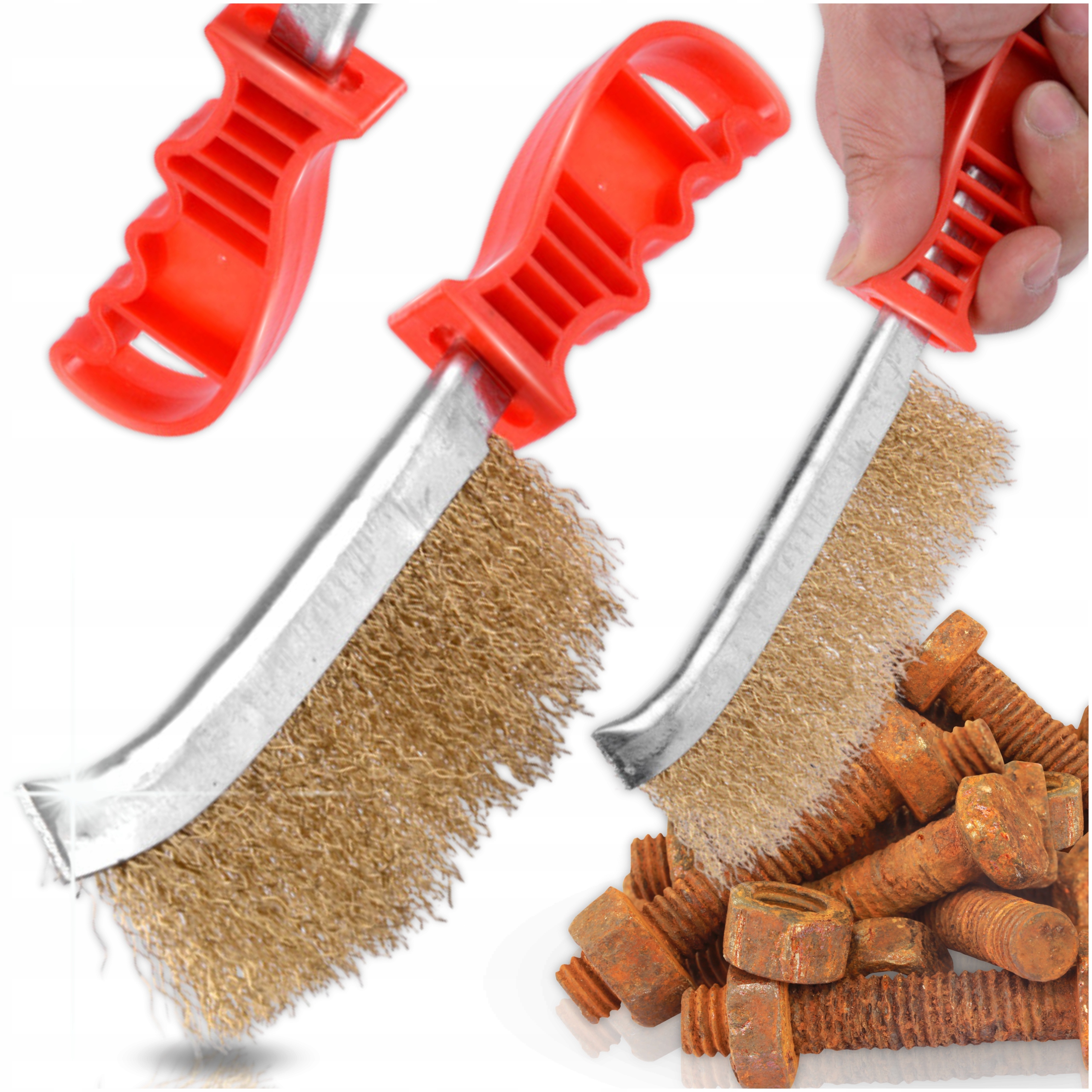 Щітка з високоякісного латунного дроту. Призначений для очищення металевих поверхонь від іржі, фарб, лаків, а також для очищення зварних швів, різьби, ободів і т.д. Рукоятка виготовлена з міцного пластику висока стійкість до зламу.