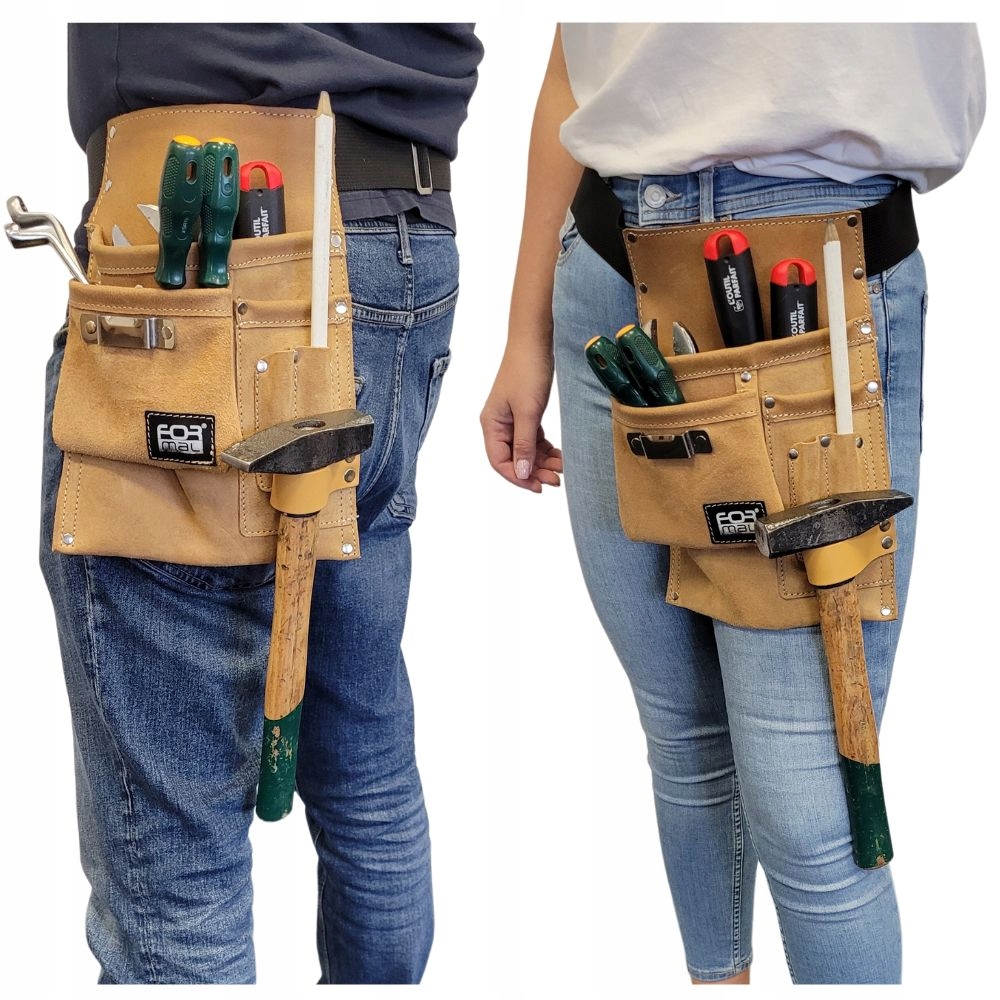 Він має міцні шви та додаткові зміцнюючі заклепки. Він оснащений з глибокими місткими кишенями, металевим тримачем для лінійки та шкіряною петлею для молотка.