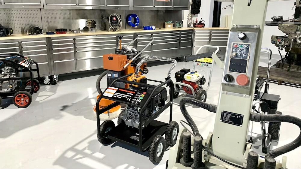 Сталевий каркас захищає пристрій від механічних пошкоджень, забезпечуючи жорсткість і довговічність, що важливо в складних умовах експлуатації. Крім того, пральна машина встановлена на пневматичні колеса, що забезпечує легке транспортування та підвищує мобільність під час використання. Ця конструкція також забезпечує чудову стабільністьпристрою навіть на нерівній місцевості, що надзвичайно важливо під час виконання робіт на відкритому повітрі.