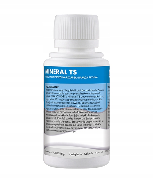мінеральні ТС -це розкольний водяний набір мінеральних елементів для голубів та інших птахів. Він підтримує здоров'я та високу форму голубів. Підтримує зростання молодих птахів, запобігає розладам у розвитку скелета та зміцнює якість снарядів, стимулює функції імунної системи. Регулярне використання підготовки є гарантією успішного розведення. Жінки, які отримують цю підготовку, не виявляють ознак дефіциту мінеральних речовин, що виявляються відкладанням яєць з м'якими шкаралупу та паралічем. Дуже вигідно вводити підготовку під час настрою. Використання препаратів під час польоту дає голубам можливість максимально доповнити необхідні мінерали для ефективної роботи нервової та м’язової системи.