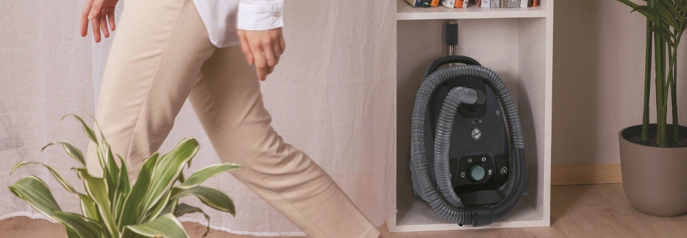 Особлива конструкція пилососа H-ENERGY 300 дозволяє значно економити простір будинку. Дозволяючи шлангу, телескопічній трубці та щітці точно підходити до корпусу пилососа, система Nanopack™ забезпечує винятково компактні розміри лише 58 см, що робить його легким і зручним для зберігання навіть у маленькій шафі.