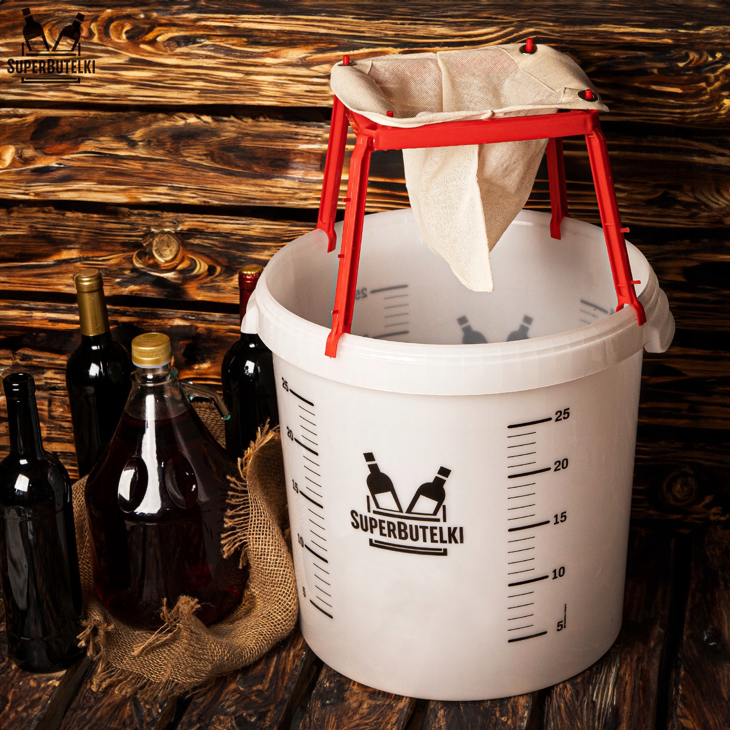 Ми рекомендуємо на інших аукціонах і в наборах придбання спеціальної стійки - ручка для виправлення сумки та контейнерів для бродіння.