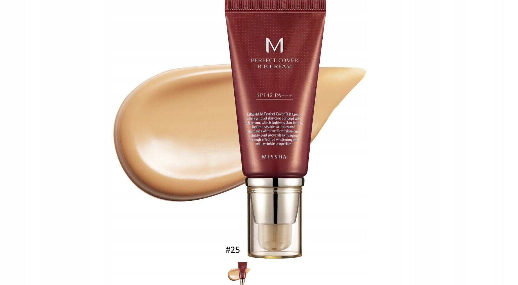 ВВ-крем Missha у кольорі №25 Теплий бежевий – незважаючи на свою назву, забезпечує високе покриття.