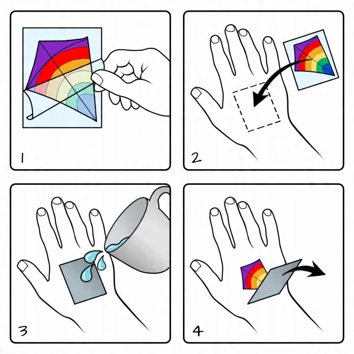 3⃣ Використовуючи вологу губку або рушник, притисніть татуювання до шкіри протягом декількох секунд