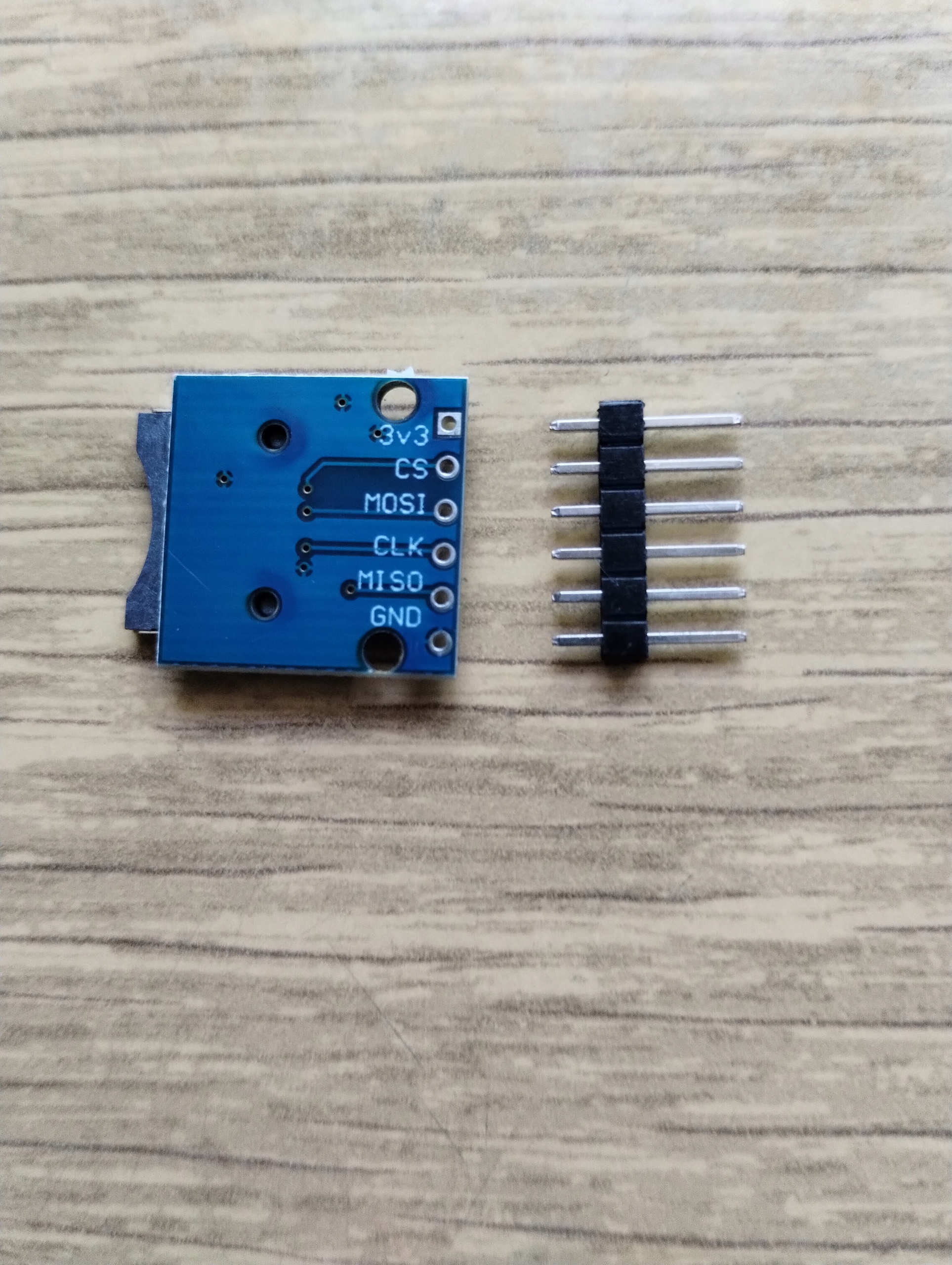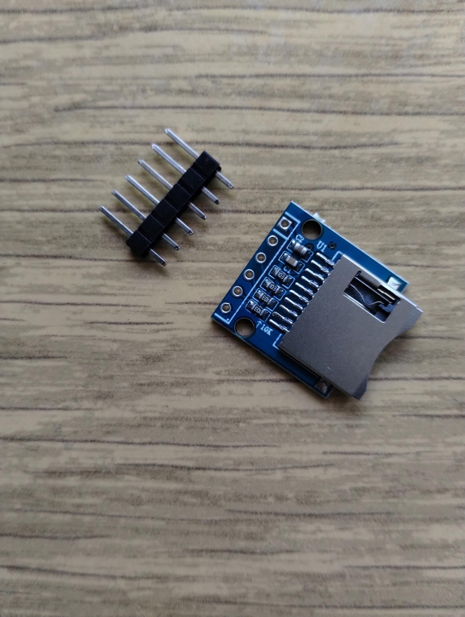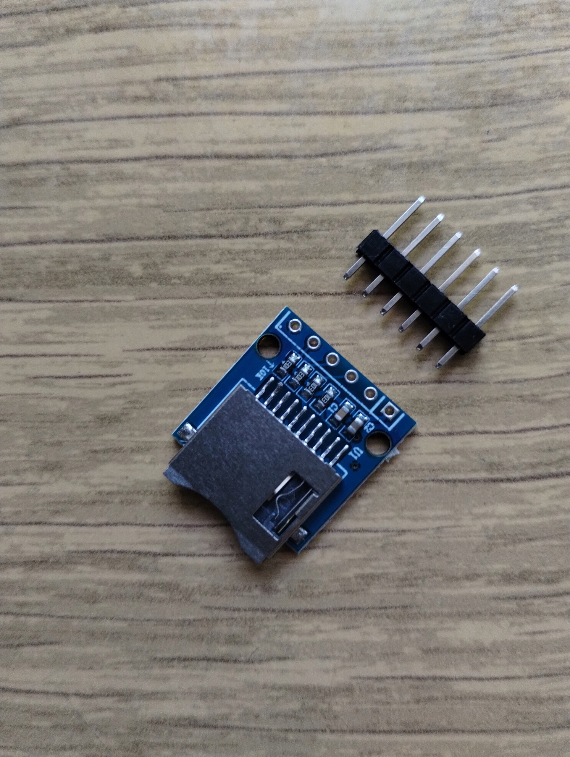 Модуль пристрою зчитування карток пам’яті MicroSD, який зв’язується через інтерфейс SPI та працює з напругою 3,3 В.