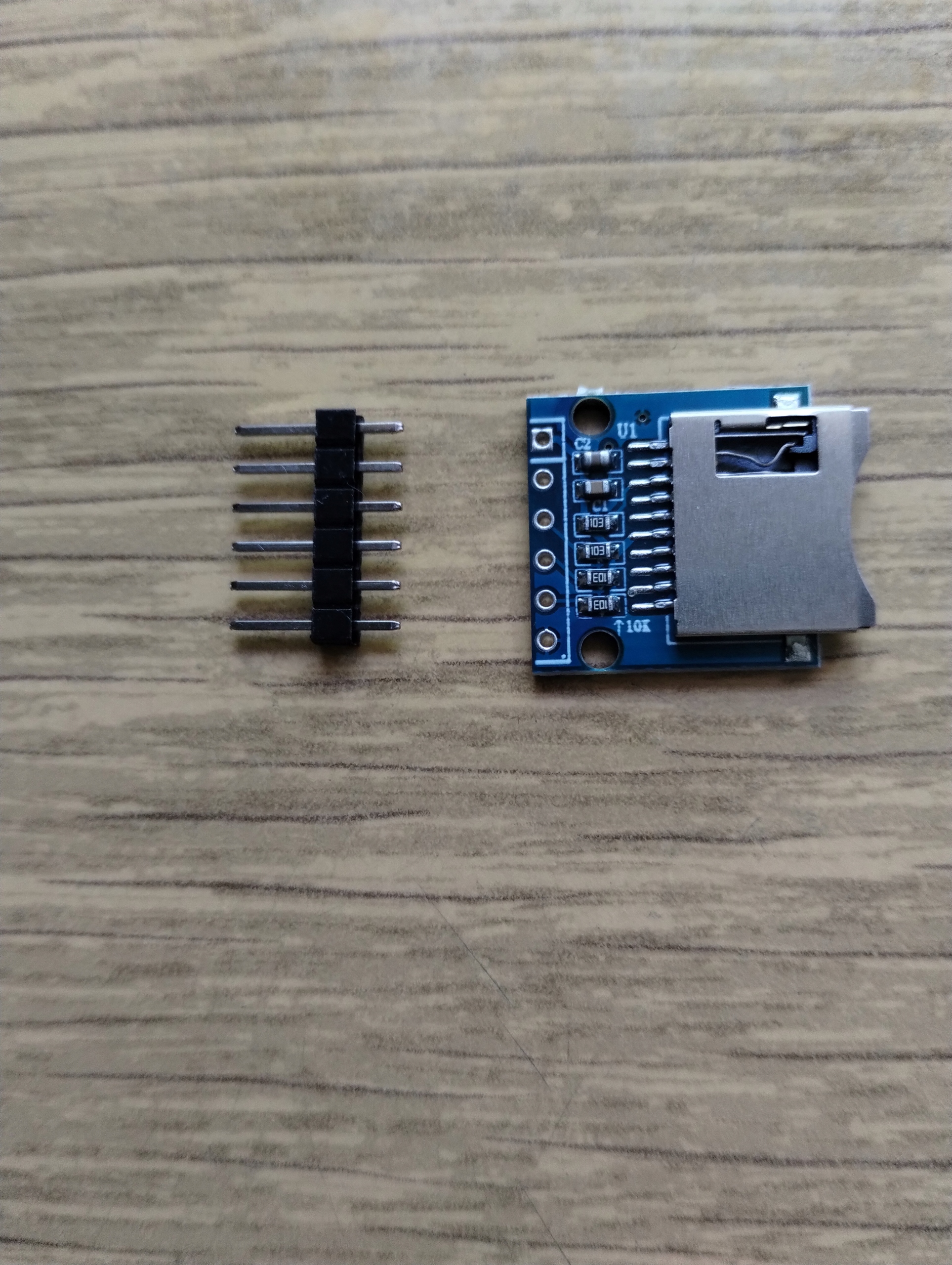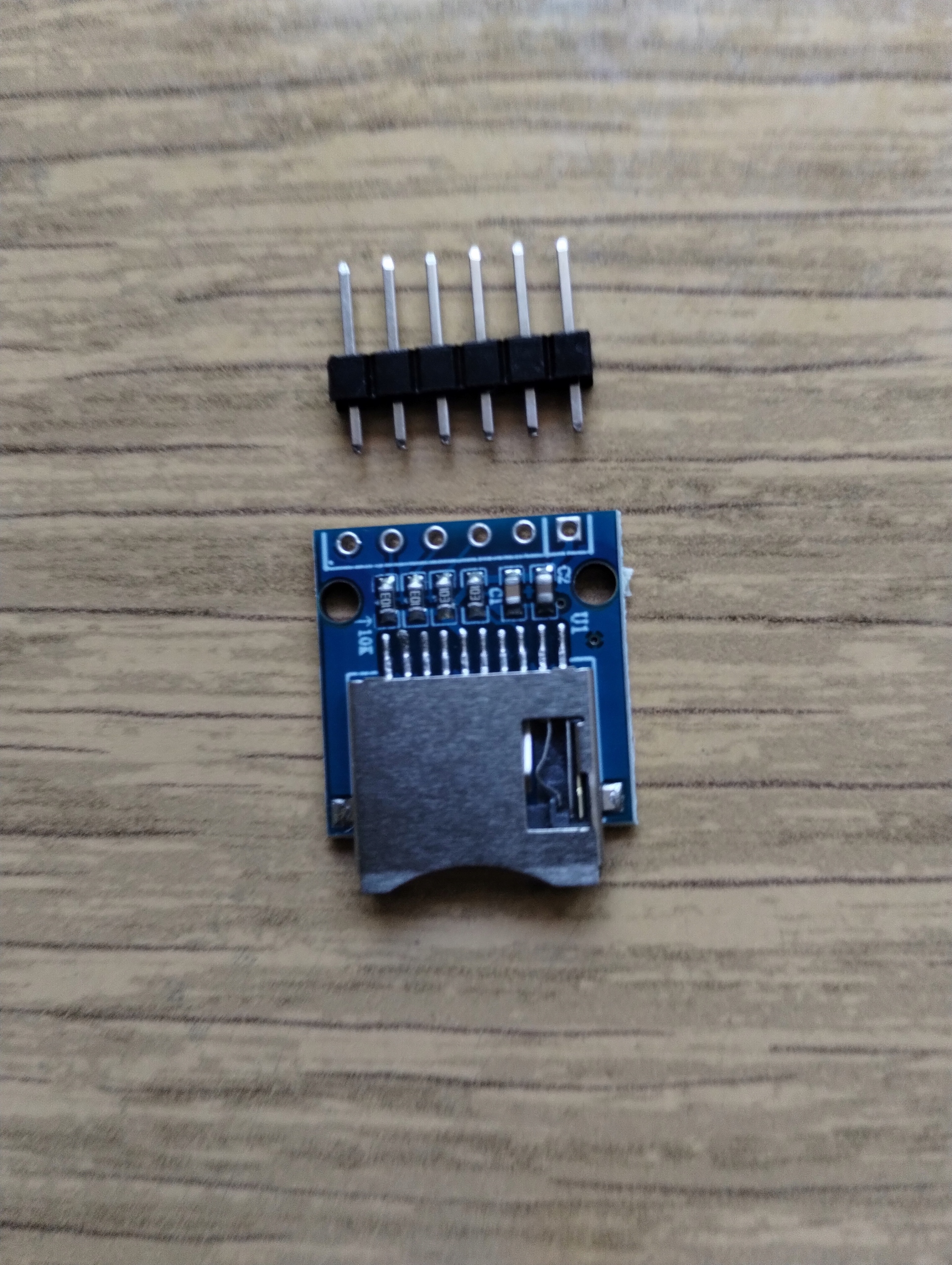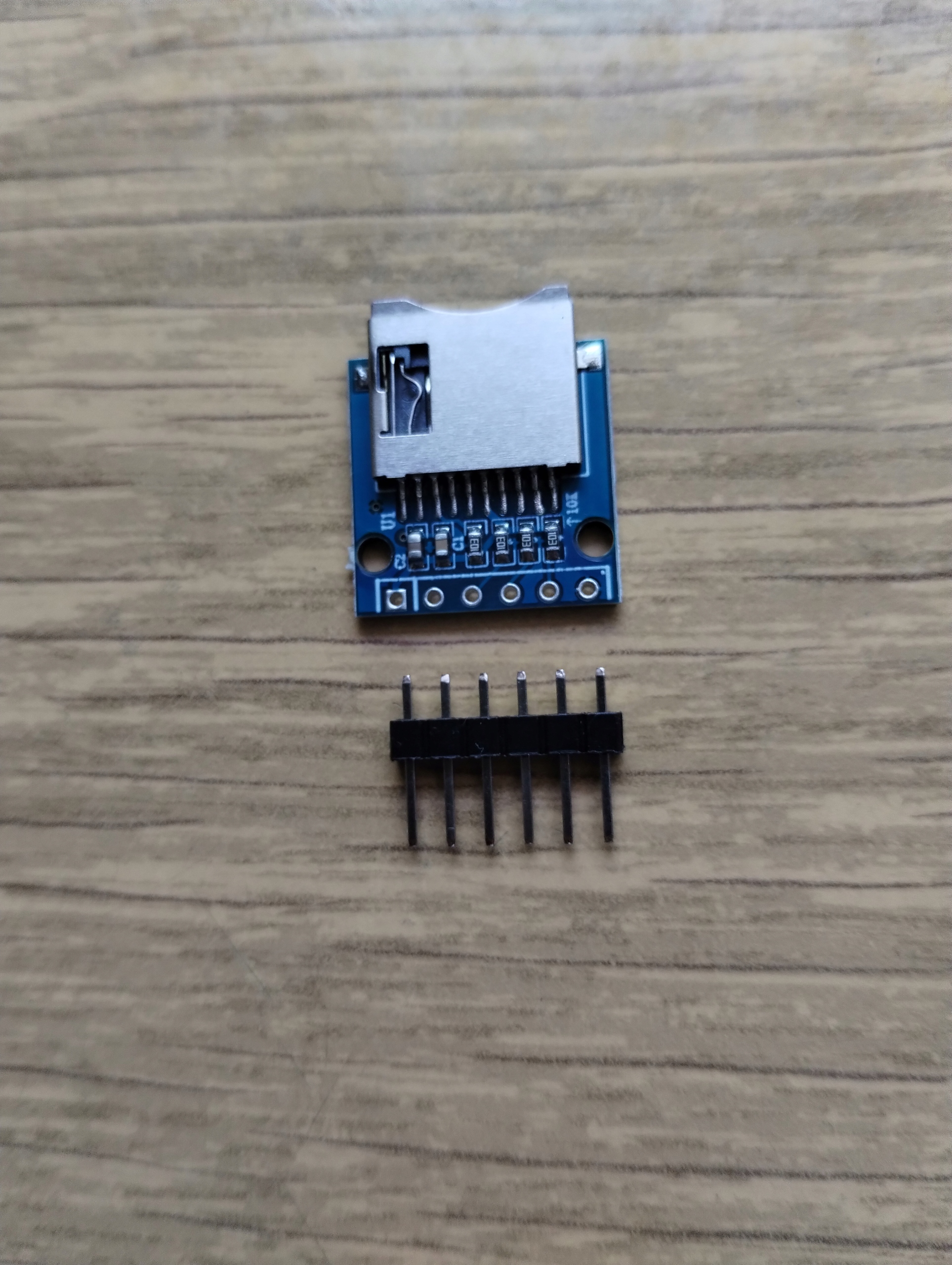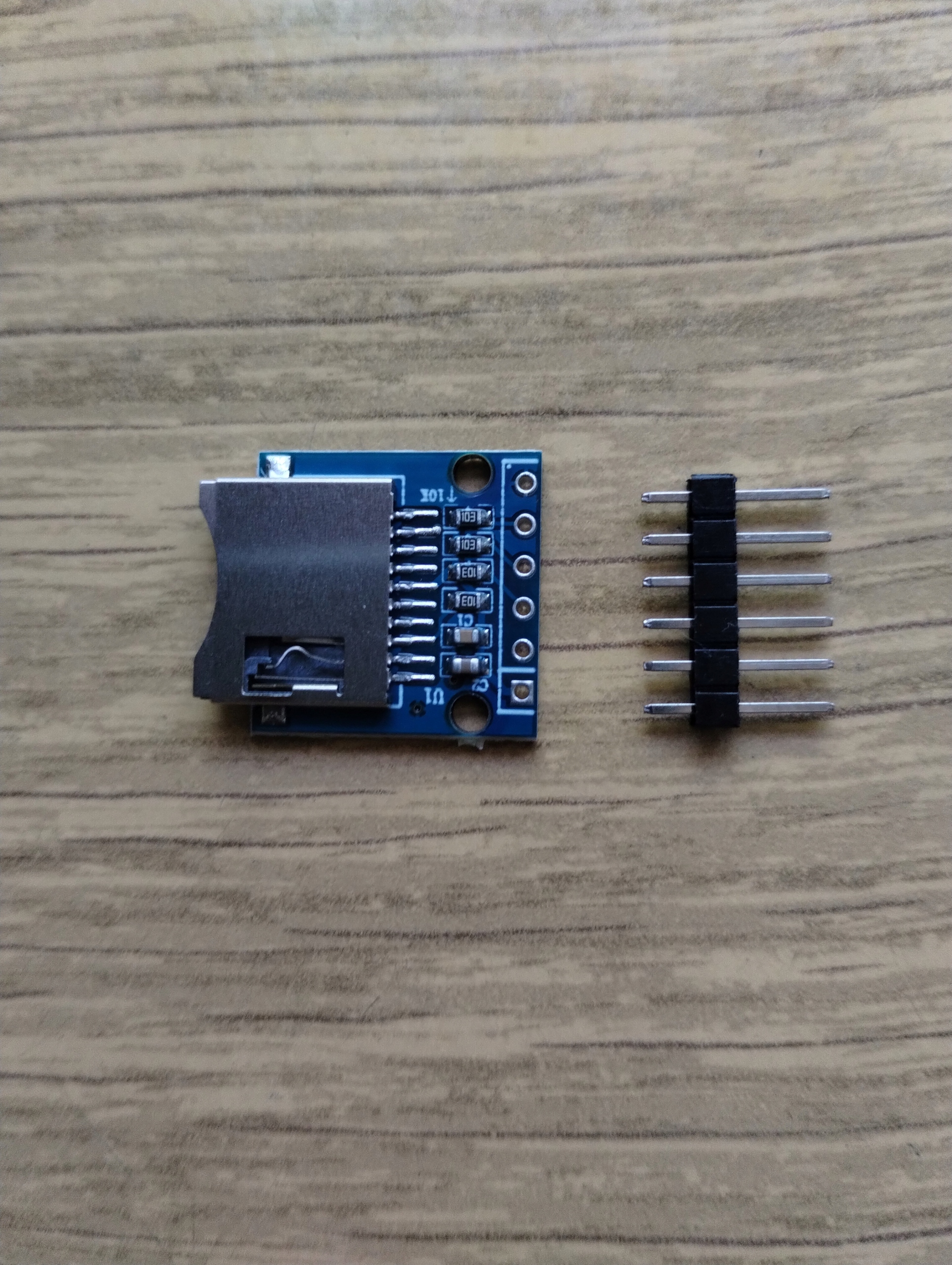 Модуль пристрою зчитування карток пам’яті MicroSD, який зв’язується через інтерфейс SPI та працює з напругою 3,3 В.