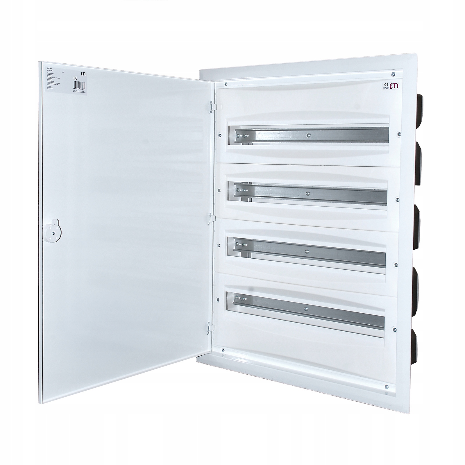 Модульний комутатор модуля з великою ємністю 96 модулів (4 ряди 24), призначений для встановлення з номінальним струмом до 100 А., оснащених металевими дверцятами та білим пластиковим корпусом, забезпечує високий рівень безпеки та міцність. Відповідає стандартам захисту IP40 та захисним класом II.