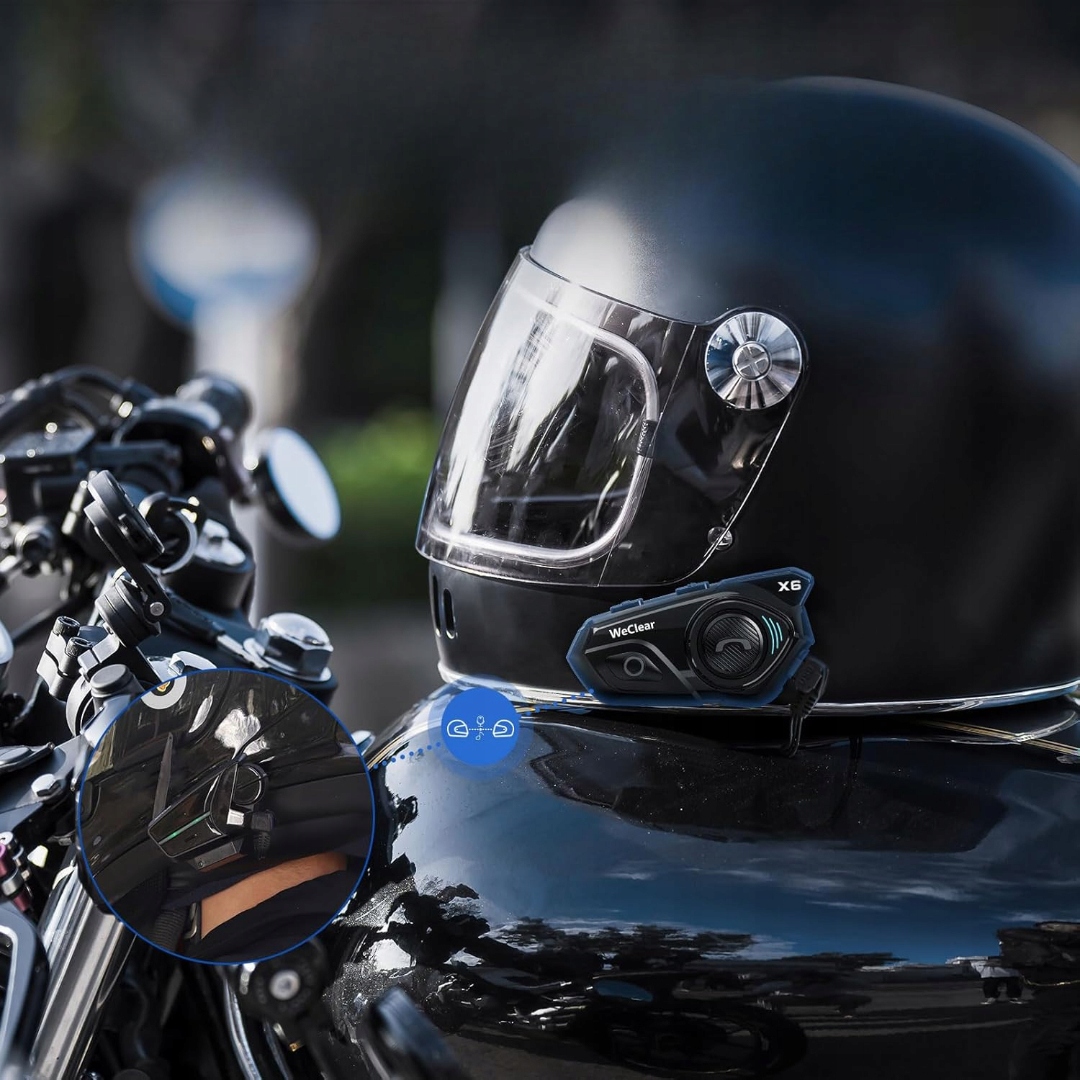Набір для навушників Weclear X6 підтримує одночасний домофон для 2-6 людей. Після натискання кнопки домофон пристрої автоматично поєднуватимуться між собою протягом 2 секунд. На шосе зі швидкістю до 120 км/год, співрозмовник все ще буде чітко почути. X6 пропонує інтелектуальне зменшення шуму DPS, тому вас не турбує вітер або шум навколишнього середовища.