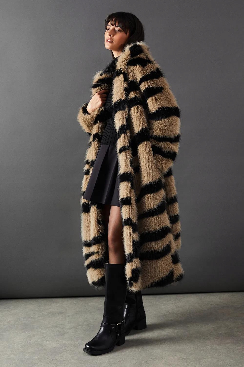 Мультикольований довгий пальто довгі рукави смуги тваринного складу 44