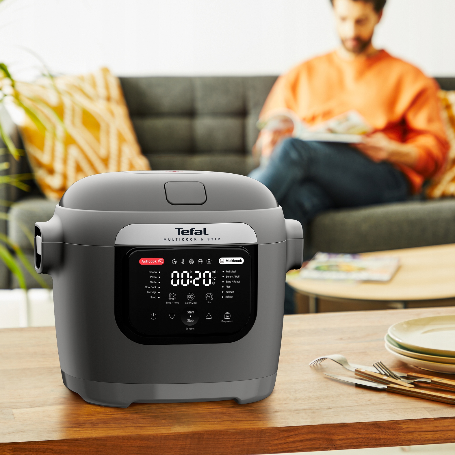 У мультиварці Tefal Multicook&Stir можна легко приготувати багато страв. Прилад оснащений 12 автоматичними програмами: різотто, макарони, рис/крупи, повноцінні страви, тушкування, приготування на пару, повільне варіння, гасіння, запікання, гратинування, йогурт і розігрівання. Це зробить приготування страв неймовірно легким для вас.