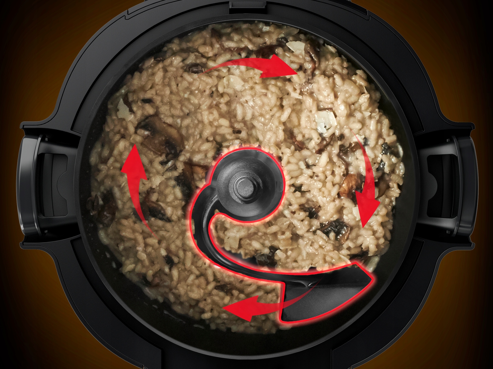 Електрична каструля обладнана автоматичною лопатею для змішування. Завдяки цьому їжа готується рівномірно і вам не доведеться думати про перемішування їжі. Приготування в цьому режимі дає навіть кращі результати, ніж у традиційних мультиварках.