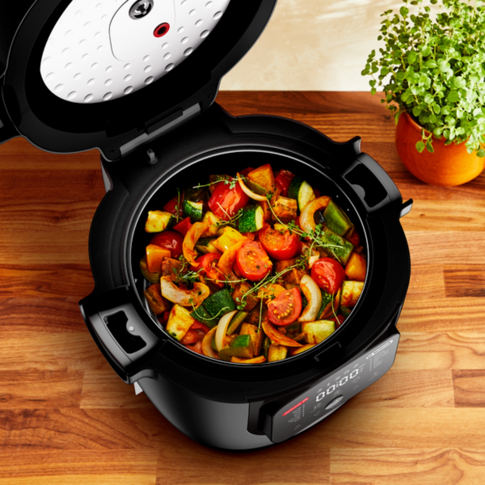 Якщо у вас велика родина або ви любите влаштовувати вечірки та готувати для гостей, мультиварка Tefal Multicook&Stir стане для вас чудовим рішенням. Все завдяки місткій 6-літровій чаші. Ви можете приготувати страву навіть для кількох людей одночасно.