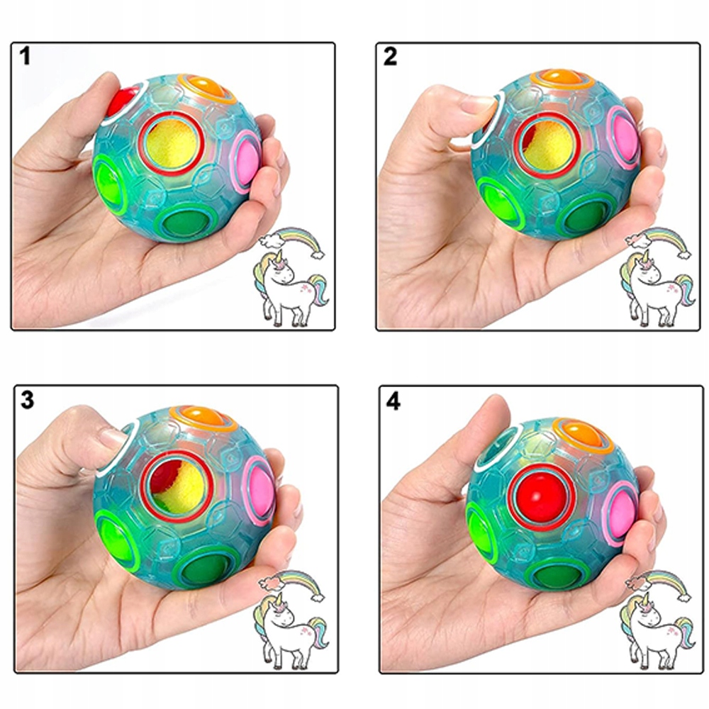М'яч ідеально підходить для дітей і дорослих, які не можуть впоратися зі стресом або страхом. Пазл «Чарівна куля» приверне увагу кожного та допоможе зменшити негативні емоції. Це ідеальна іграшка, яка поєднує приємне із корисним.