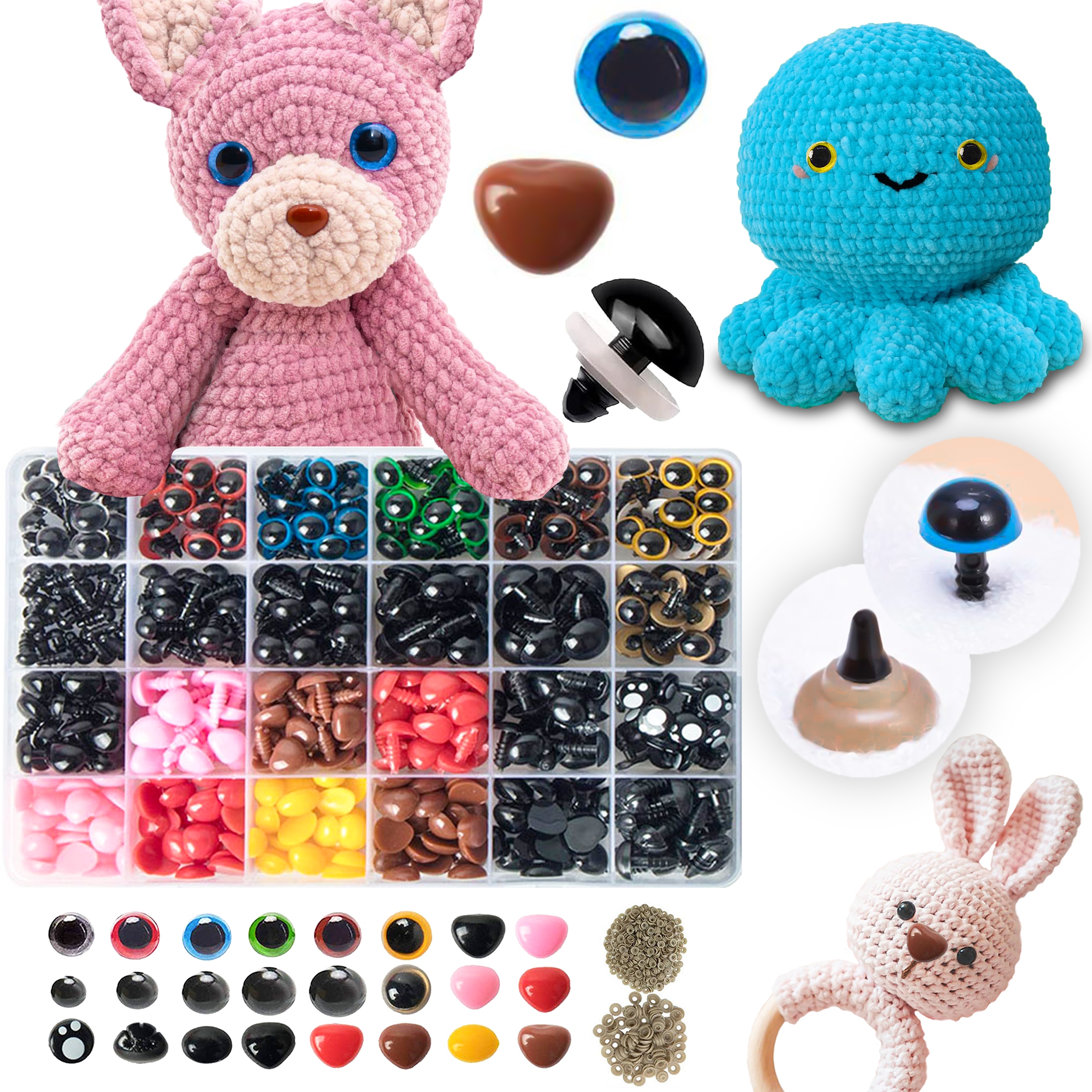 Цей величезний набір пластикових очей і носів (1040 штук!) - це все, що вам потрібно, щоб дати життя вашим м'яким тваринкам, лялькам або фігуркам. Ідеально підходить для любителів рукоділля, вчителів, батьків і маленьких художників!