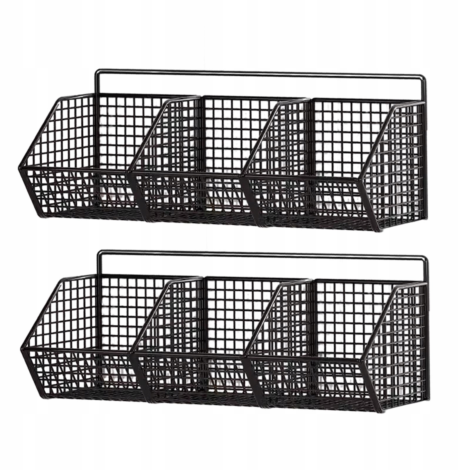 Металевий настінний органайзер з трьома кошиками - це практичне рішення для кухні, комори та ванної кімнати. Суцільна чорна сталева конструкція дозволяє зручно зберігати овочі, фрукти, спеції, а також косметику та миючі засоби. Три окремі відділення полегшують розділення, а відкриті кошики забезпечують циркуляцію повітря - ідеально для свіжих продуктів. Монтаж простий і не вимагає свердління - самоклеючі кріплення включені для швидкого та стабільного кріплення до гладких поверхонь. Добре підійде на стіну, дверцята шафи, холодильник, пральну машину та інші місця, які потребують додаткового простору.