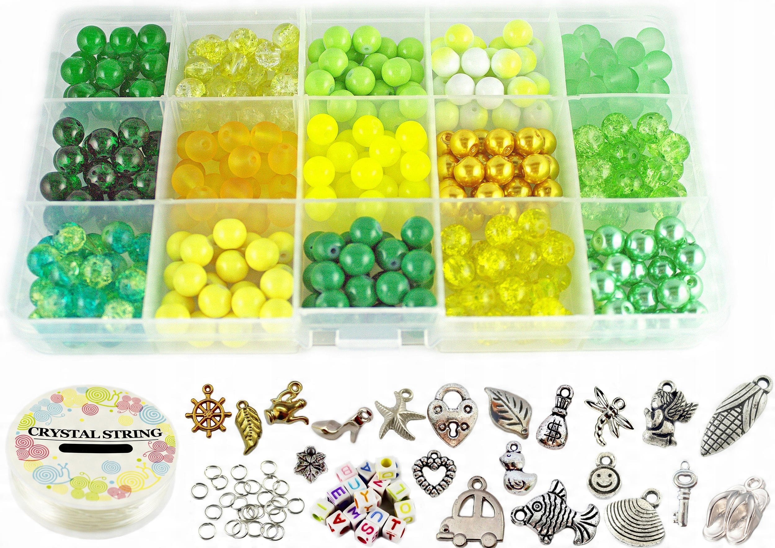 - 15 кольорів скляні намистини по 24 штуки в кожному відділенні. Всього 360 намистин