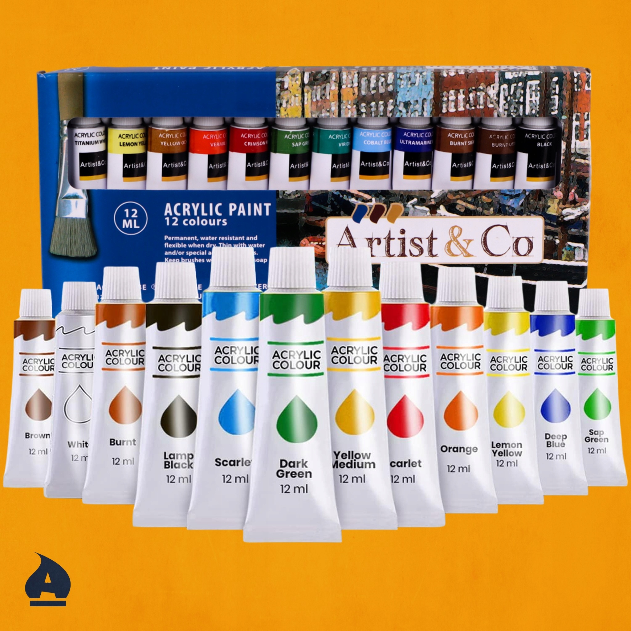4️⃣ 12 акрилових фарб по 12 мл - чудова покриваність, висока адгезія, без розчинників.