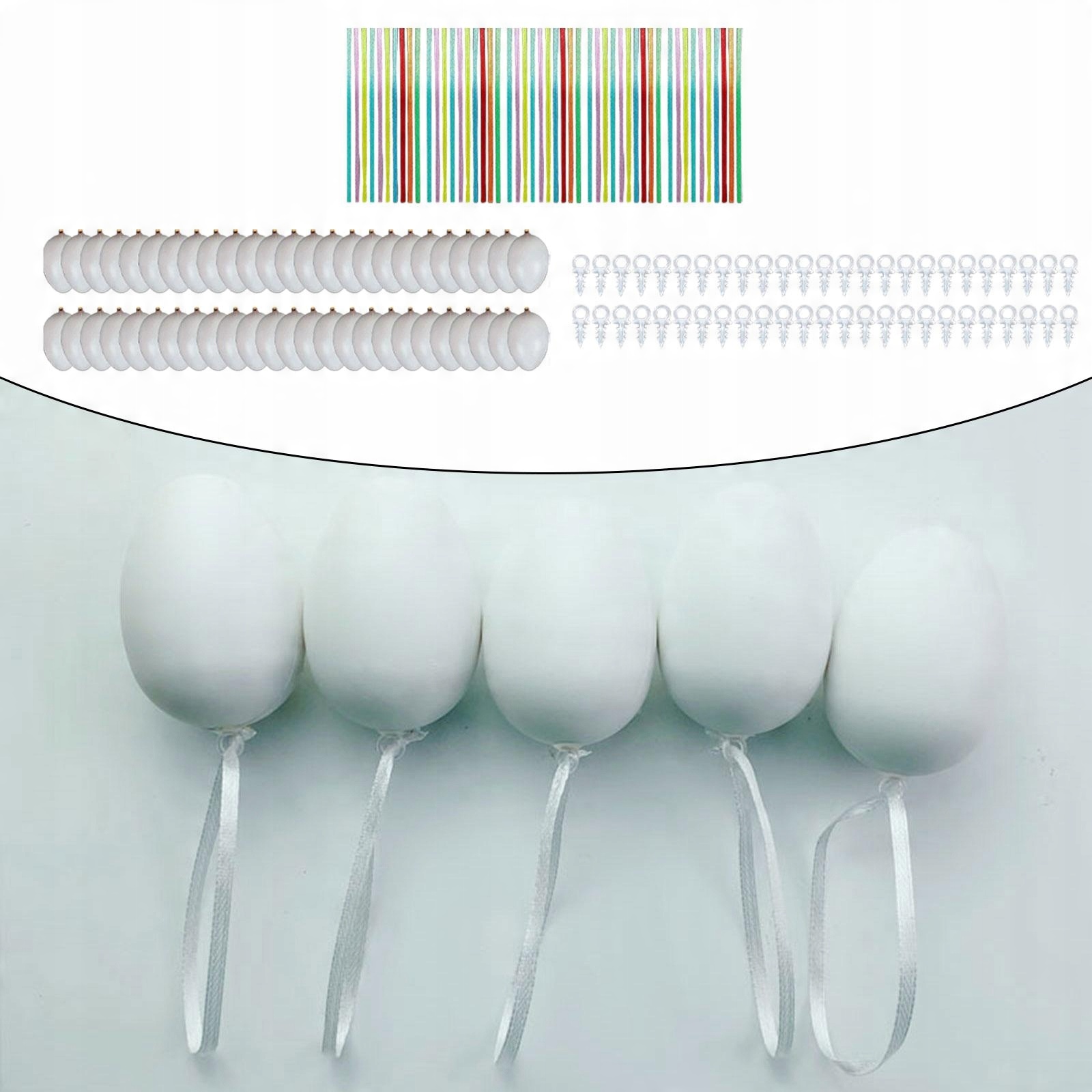 Пакет: містить 50 білих великодніх яєць, 50 вставних кілець і 50 стрічок, достатньої кількості та потрібного розміру, щоб повністю використати свій творчий потенціал, зробити особливі великодні яйця.